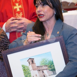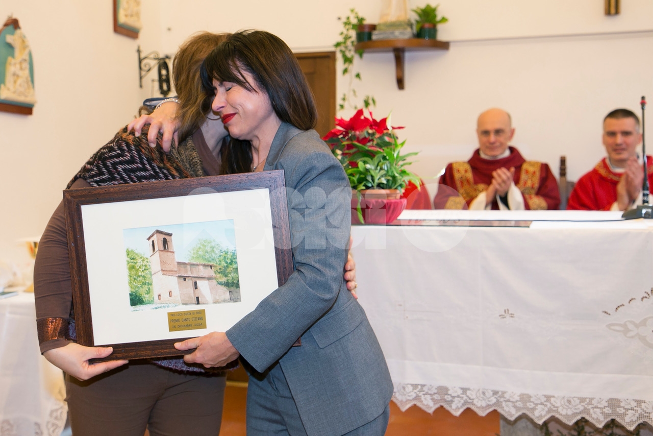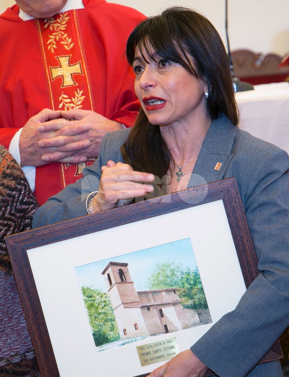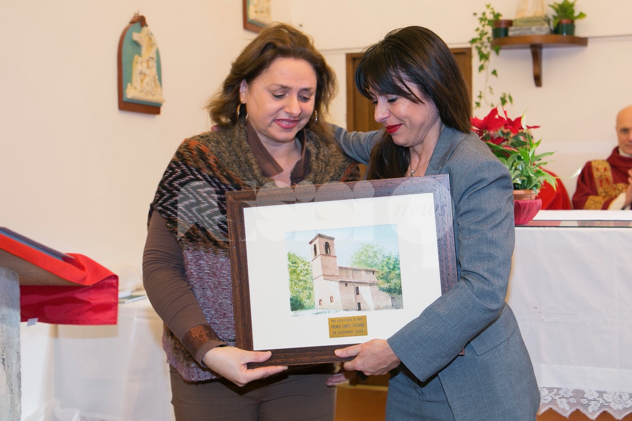 La Pro loco di Costa di Trex ha assegnato il diciassettesimo premio Santo Stefano alla presidente della Regione dell’Umbria, Stefania Proietti. La consegna è avvenuta giovedì 26 dicembre 2024 dopo la santa messa presieduta dal parroco, don Alessandro Picchiarelli, in occasione della festa del patrono della frazione. La presidente della Pro loco, Marina Rosati, ricordando la nascita del premio e le ragioni fondanti, ha letto le motivazioni che hanno orientato la scelta del consiglio direttivo: “Il riconoscimento di quest’anno va a Stefania Proietti: “per aver messo al centro dell’attività amministrativa l’ascolto dei cittadini e l’accoglimento delle loro necessità , per aver ricoperto diversi incarichi con coraggio, determinazione e dedizione totale, muovendo l’azione istituzionale verso la montagna, i suoi residenti, le esigenze e potenzialità al pari di altre zone del Comune di Assisi; per non aver mai dimenticato le proprie origini, evidenziando sempre un forte senso di appartenenza; per tutto ciò che ha fatto in questi anni da sindaco prima e da presidente della Provincia di Perugia poi e per tutto quello che siamo certi potrà e saprà fare”. Dopo la consegna del premio, un acquerello dall’artista assisano Claudio Fronza che raffigura la chiesa parrocchiale di Santo Stefano di Costa di Trex, la governatrice, all’oscuro del riconoscimento che le sarebbe stato assegnato ma presente alla cerimonia come a tutte le precedenti edizioni, ha voluto ringraziare la Pro loco e visibilmente commossa ha sottolineato che “il suo impegno sarà totale perché, se si sa prestare attenzione alle piccole realtà , si riesce a fare altrettanto bene anche per questioni e dimensioni più grandi. Se sapremo valorizzare territori come questo – ha concluso – faremo il bene di tutta collettività ”.