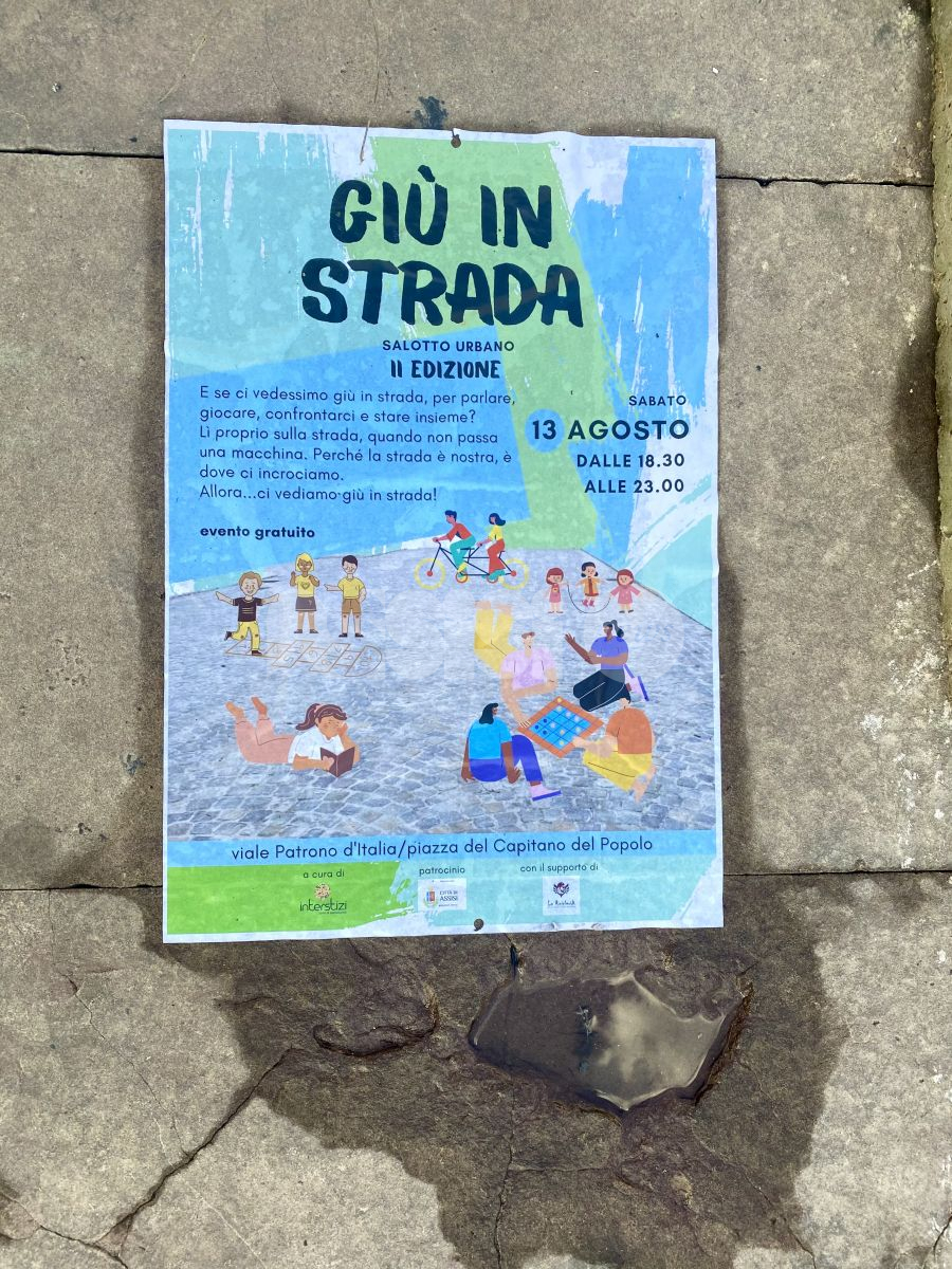 La realizzazione dei salotti di Giù in strada è stata possibile grazie alla collaborazione con “La Ricicleria” di Alex Trabalza, che ha messo a disposizione tutti gli oggetti di arredamento, dando vita a uno spazio di qualità e aprendo una riflessione anche sul valore del riuso e del riciclo. “L’associazione “Interstizi” – concludono – ringrazia i cittadini per l’ampia partecipazione e li invita a sostenerla e a seguirla per le prossime iniziative”.