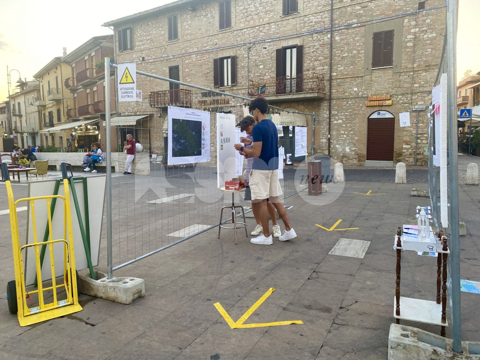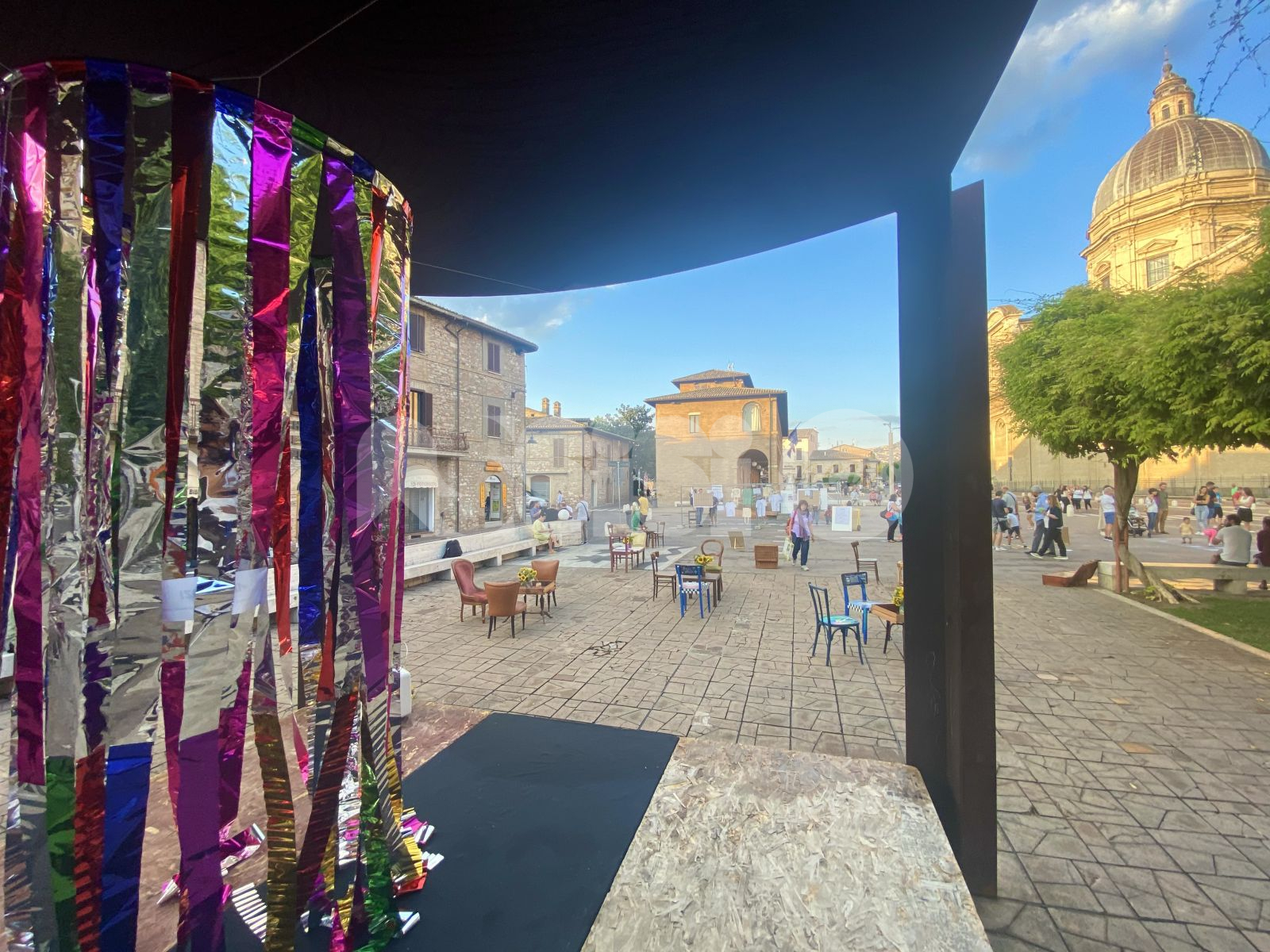 La piazza e la strada, spazi pubblici per eccellenza, da luogo di passaggio si sono trasformate in situazioni in cui permanere e stare insieme. Sono state allestite tre aree: un salotto urbano in cui fermarsi a sedere e parlare, un percorso interattivo per confrontarsi su un tema scelto (riguardante le potenzialità della piana agricola di Assisi) e una grande area giochi per adulti e bambini, realizzata con il solo ausilio di gessi e alcuni materiali di riciclo.