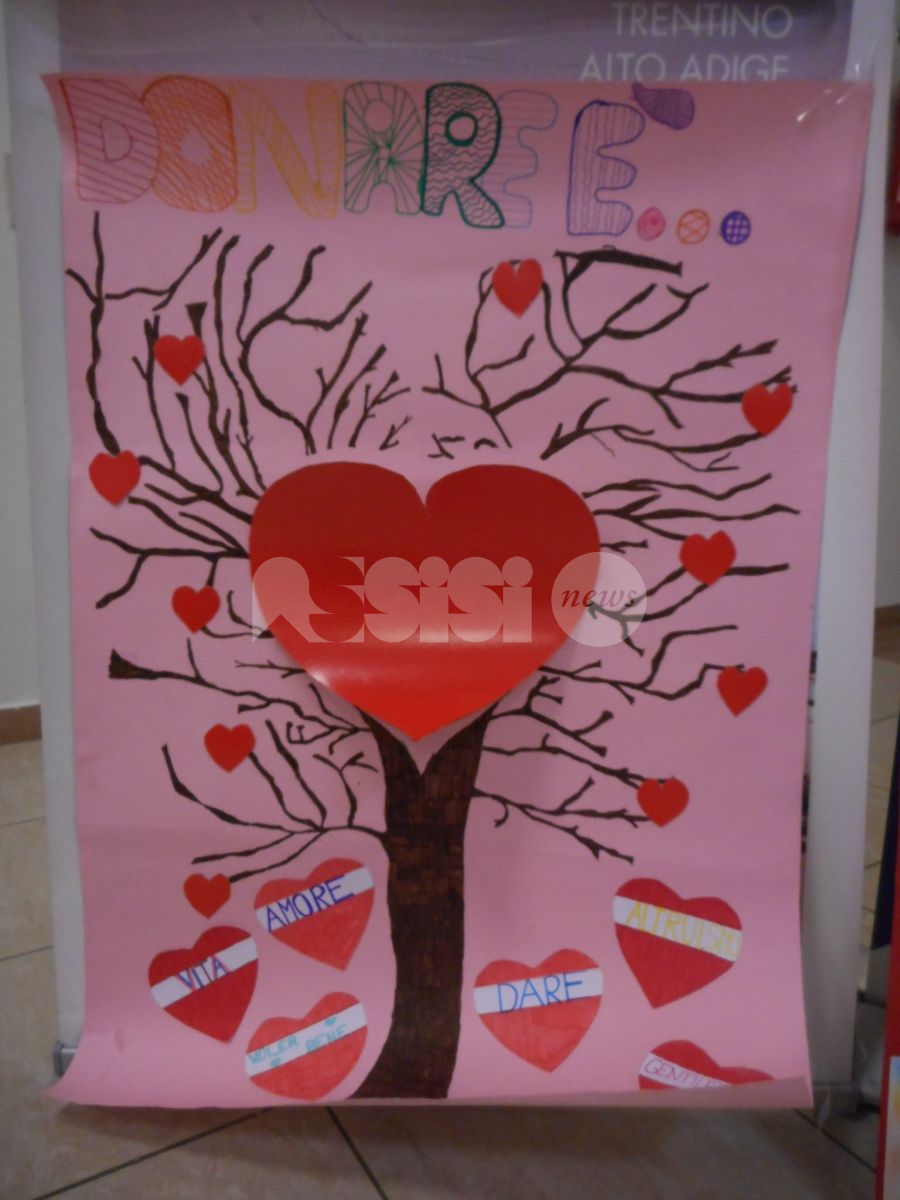 L’enorme collage ideato dalla classe ha messo in evidenza i vari aspetti positivi della donazione, rivelando grande fantasia e varietà di immagini