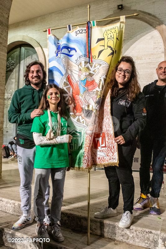 Al termine della mini lizza, il pubblico ha riservato un applauso scrosciante ai giovanissimi rionali e subito dopo la consegna del Minipalio 2023, realizzato dalla giovanissima Sofia Falgiani della classe 2°F – Scuola Secondaria di 1° Colomba Antonietti di Bastia Umbra, sono partiti i festeggiamenti dei ragazzi del Rione San Rocco che, come da tradizione, durante la serata hanno festeggiato la vittoria del Minipalio sfilando, tra gli applausi, su tutte le taverne rionali.