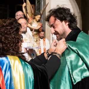 In tarda serata, in presenza del notaio Mario Biavati, il Presidente dell’Ente Palio Federica Moretti, il Coordinatore Alioscha Menghi e i capitani dei 4 rioni (Michele Betti del Rione Moncioveta, Elisa Frappini del Rione Portella, Simone Ercolani del Rione San Rocco e Saverio Pagliaccia del Rione Sant’Angelo) hanno ricevuto la giuria 2022, composta da: Gianfranco Anzini (regista, autore televisivo – Presidente di Giuria), Silvia Tagliaferri (costumista), Paolo Monachesi (light designer), Ketty Roselli (attrice, cantante, conduttrice), Pio Stellaccio (attore) e Laura Soprani (scenografa, scultrice, artista, arredatrice, design) per tutte le operazioni di voto. Dopo aver consegnato al notaio la busta sigillata, che sarà aperta il 28 settembre, la giuria tecnica ha diramato le nomination ufficiali del Palio de San Michele 2022 per i premi “Monica Petrini” (miglior attore), “Stella nascente” (miglior giovane attore) e miglior carro.