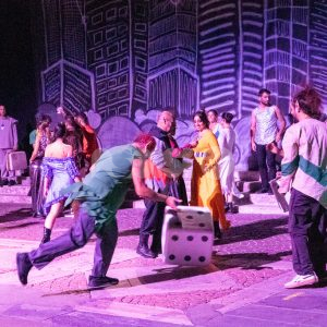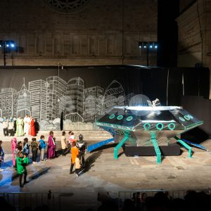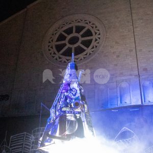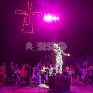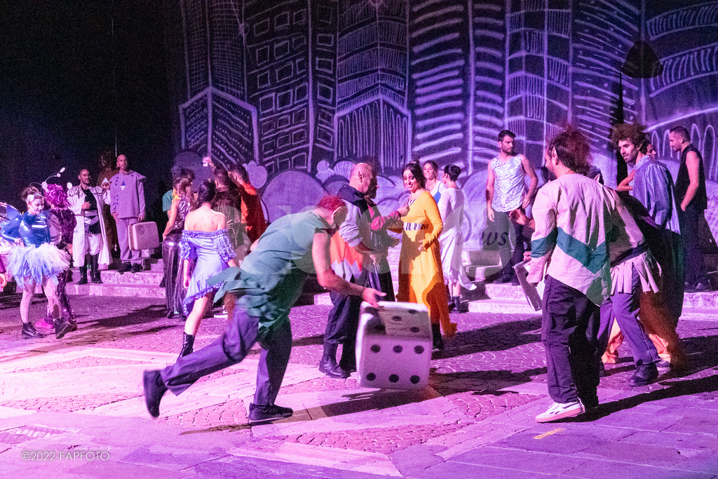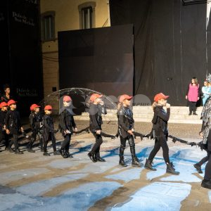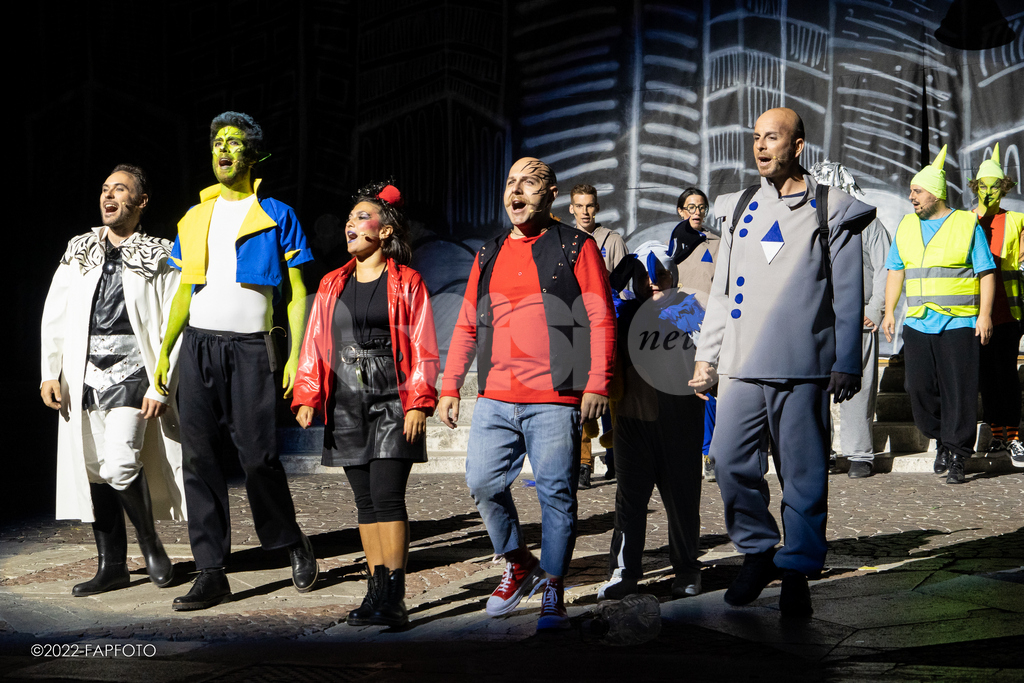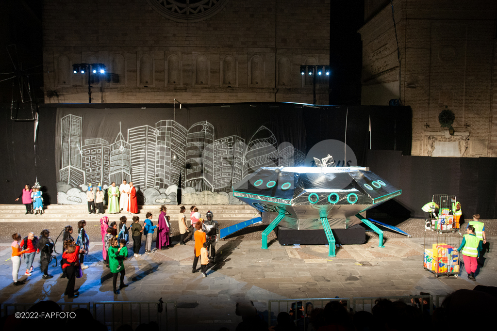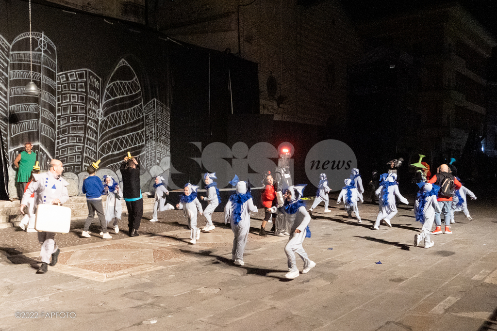 “È più facile raggiungere la felicità se trascorriamo la nostra esistenza in modalità ESSERE o AVERE? “RALOVE 6022” è una fiaba del futuro che si pone questa domanda.Come Hansel e Gretel i due fratelli protagonisti della nostra favola attraversano il “bosco” della loro esistenza affascinati da una casa di marzapane ( nel nostro caso si tratta di una preziosa valigia ) e durante il loro viaggio incontrano gli orchi, lo stregone cattivo, i folletti maligni e dispettosi, ma anche un cavaliere senza macchia e senza paura, un viandante coraggioso e una fata madrina al fianco dei quali lotterà per trovare la luce che li guiderà verso un futuro migliore.” Stasera sarà invece il turno del Rione Moncioveta in scena con la sfilata “LE NUVOLE DENTRO”.