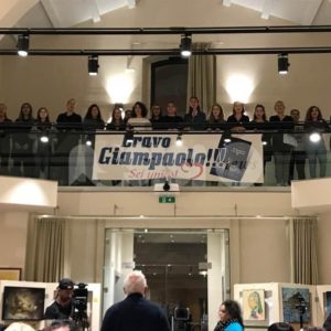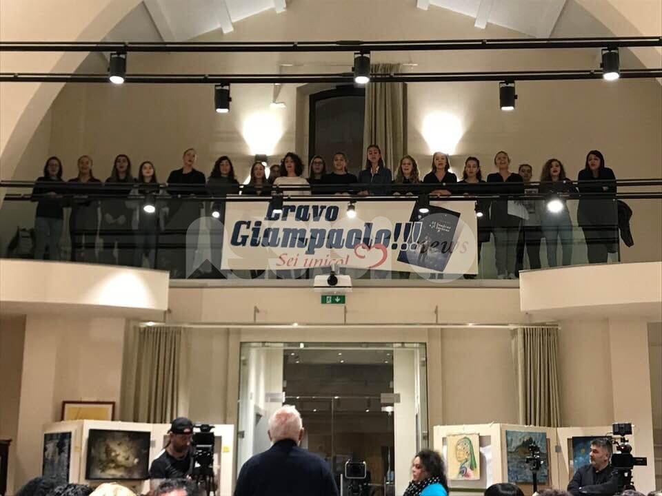 Il folto pubblico presente ha applaudito a lungo le letture di alcuni brani del libro fatte da Giannermete Romani, i canti del Coro Aurora di Bastia diretto d Stefania Piccardi , la musica del fisarmonicista Giovanni Sabatini. Giampaolo Bellucci ha parlato della sua opera insieme a Maurizio Terzetti e a Luigino Ciotti, presidente del circolo primo maggio. Gli amici dell’autore, sul finale , hanno tirato fuori uno striscione dedicato a Giampaolo come manifestazione di affetto e stima.