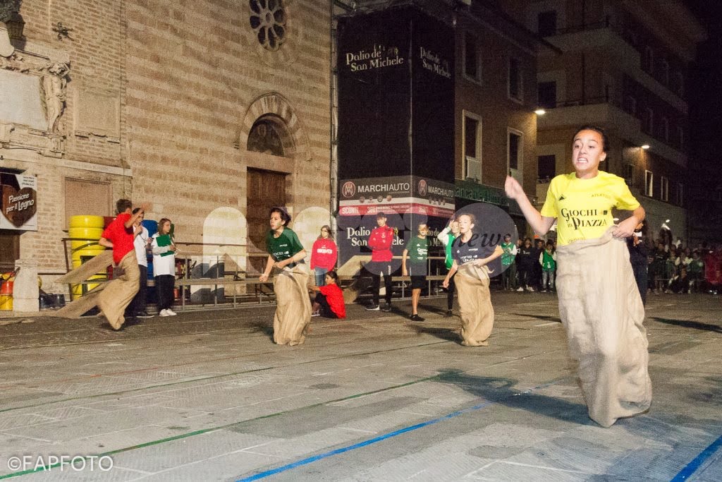 La competizione dedicata ai piccoli rionali è stata avvincente, con il Rione Portella (16 punti) che si è aggiudicato ben 3 giochi su 4; al secondo posto il Rione Sant’Angelo (12 punti), mentre chiudono ad ex aequo ad 8 punti San Rocco e Moncioveta, con i verdi balzati al terzo posto grazie al miglior piazzamento sulla Mini Lizza.