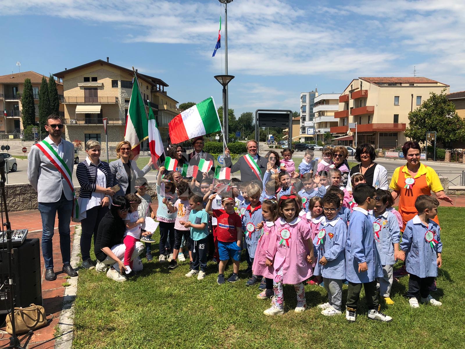 La festa della Repubblica 2019 a Bettona si celebra con un occhio di riguardo alle nuove generazioni che vengono coinvolte perché attraverso la Festa della Repubblica è possibile far riscoprire ai giovani i valori della democrazia. La cerimonia, il 2 giugno, si è aperta con la solenne alzabandiera , accompagnata dall’inno nazionale e dai saluti istituzionali del Sindaco Lamberto Marcantonini per Bettona e dal Sindaco Eridano Liberti per Torgiano: successivamente rappresentanze degli studenti dell’Istituto Comprensivo Torgiano- Bettona hanno letto poesie e eseguito, con il flauto , brani musicali . “La festa della Repubblica 2019 – il commento dell’amministrazione – È stato un grande momento di partecipazione con tutti gli intervenuti : autorità civili e religiose , associazioni , forze dell’ordine e cittadini”.