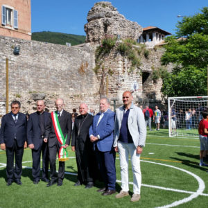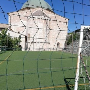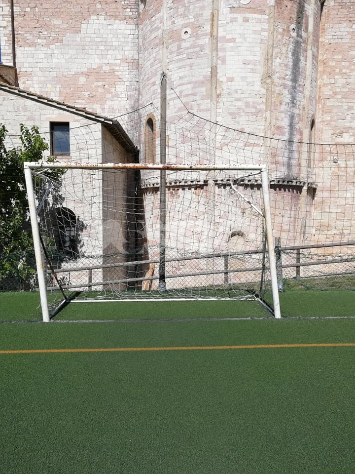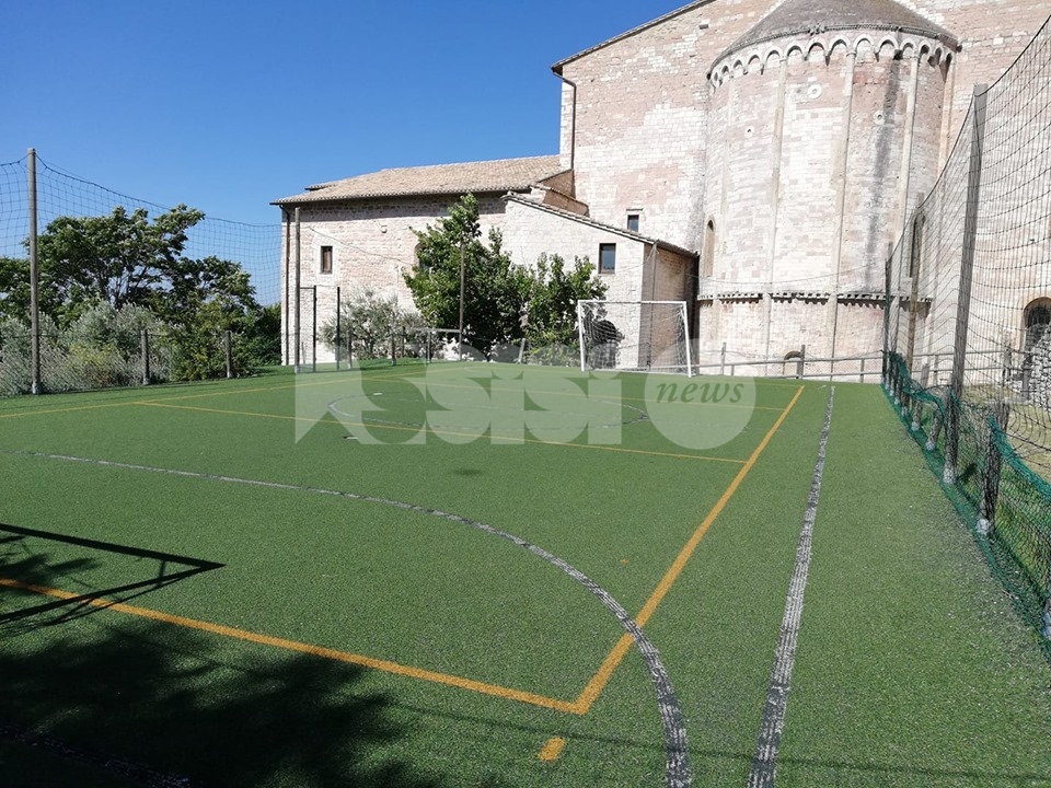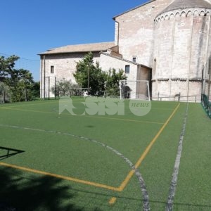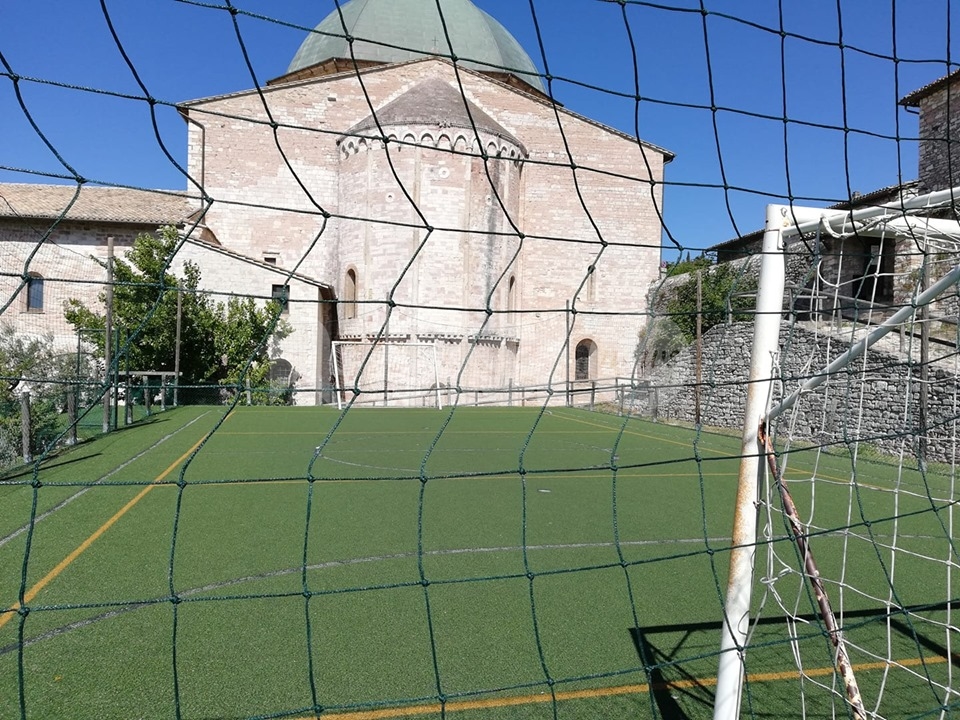 Allestito alle spalle della cattedrale in via del Turrione (nell’orto, dove prima c’era una superficie in cemento usata per poggiare il container/chiesa ai tempi del terremoto), il campetto, in erba sintetica, era stato inaugurato alla presenza autorità civili, i ragazzi del Centro Pastorale Regina Pacis, i genitori e gli amici della comunità parrocchiale di San Rufino. Grazie alla realizzazione del campetto si sono chiusi anni di polemiche: era il 2008 quando religiosi e fedeli protestavano perché i muri di Santa Chiara venivano presi a pallonate (cosa che, in verità, qualche volta succede tuttora), lamentele cui facevano da controcanto quelle dei genitori, secondo cui “appena i nostri figli cominciano a giocare nella piazza subito arrivano i vigili urbani a dirci che i bambini disturbano”. Dopo anni di tira e molla il lieto fine, grazie anche alla “testardaggine” di don Cesare che, nel 2014, aveva portato alla creazione del campetto.