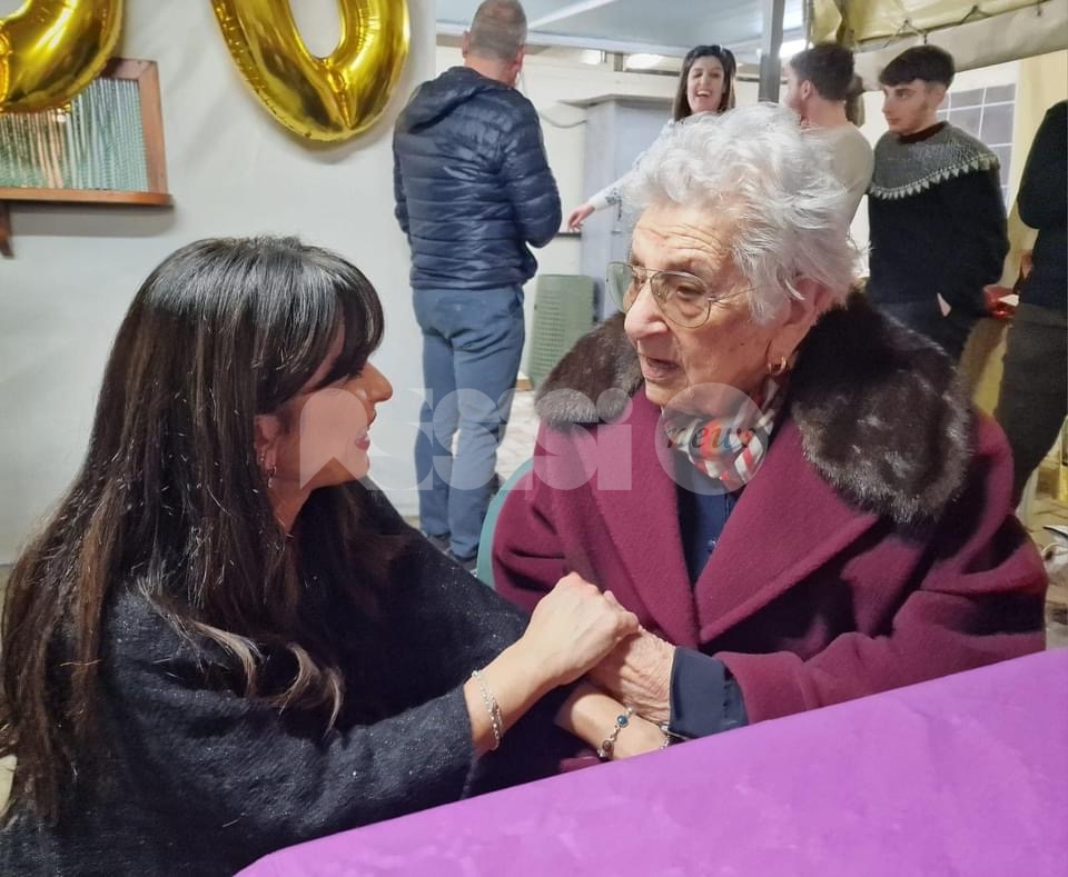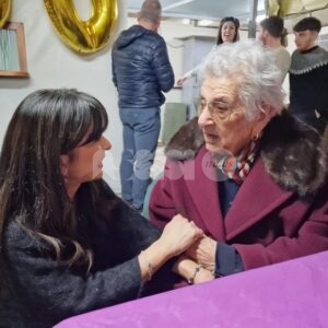 A festeggiarla i figli Franco e Paolo con le nuore Enia e Tiziana con i nipoti Gianluca e Marina e Romina e Laura, i pronipoti amatissimi e che la adorano e tantissime persone tra parenti ed amici.