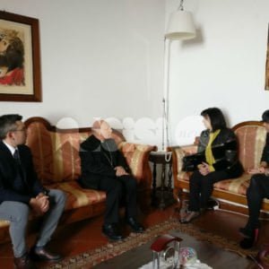 Nel giorno dell’Immacolata, invece, Assisi e Betlemme si sono incontrate sul fronte religioso: dopo aver partecipato all’accensione dell’albero e San Francesco e all’inaugurazione della mostra dei presepi a Santa Maria degli Angeli, Baboun ha incontrato Sorrentino in vescovado. Accompagnata da Proietti e dal consigliere comunale Paolo Sdringola, Baboun si è trattenuta per quasi un’ora in vescovado, visitando la sala della Spoliazione e parlando a lungo con monsignor Sorrentino anche della situazione in Terra Santa e dei rapporti tra israeliani e palestinesi. La signora Baboun ha poi invitato il vescovo a Betlemme, mentre monsignor Sorrentino ha donato al sindaco il suo libro in inglese “Complici dello Spirito”, il documentario sulla visita di Papa Francesco in Assisi il 4 ottobre del 2013 e un’icona della Madonna di Pompei.