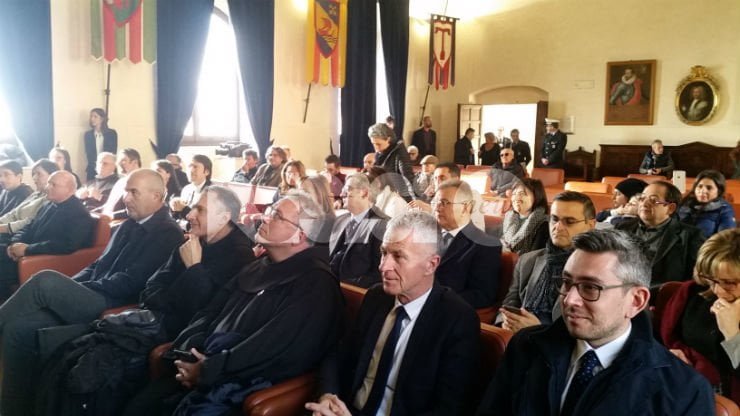 Venerdì mattina nella Sala della Conciliazione, alla presenza della giunta, del vescovo Domenico Sorrentino e delle famiglie Francescane, il sindaco Stefania Proietti e la prima cittadina di Betlemme (che ha anche ricevuto una bandiera dal Centro Pace di Assisi) hanno festeggiato il gemellaggio che unisce Assisi e Betlemme, nato all’insegna della pace e dei valori francescani. Baboun ha ricevuto in dono un dipinto di Francesca Capitini e portato a Proietti un libro su Betlemme. Per il sindaco di Betlemme, se la sua città è la culla della Natività, Assisi è la città in cui è nato uno dei più forti portatori del messaggio di Gesù, ossia Francesco, mentre la prima cittadina di Assisi ha sottolineato invece come sia necessaria non solo la speranza di pace, ma anche che le persone lavorino per la pace. Al termine dell’evento il Sindaco Baboun, contravvenendo al programma previsto, ha fortemente voluto recarsi a Norcia per toccare con mano, prima del suo rientro, la situazione post sisma e per portare una luce di speranza che da Betlemme illumini Norcia della Misericordia del Natale.