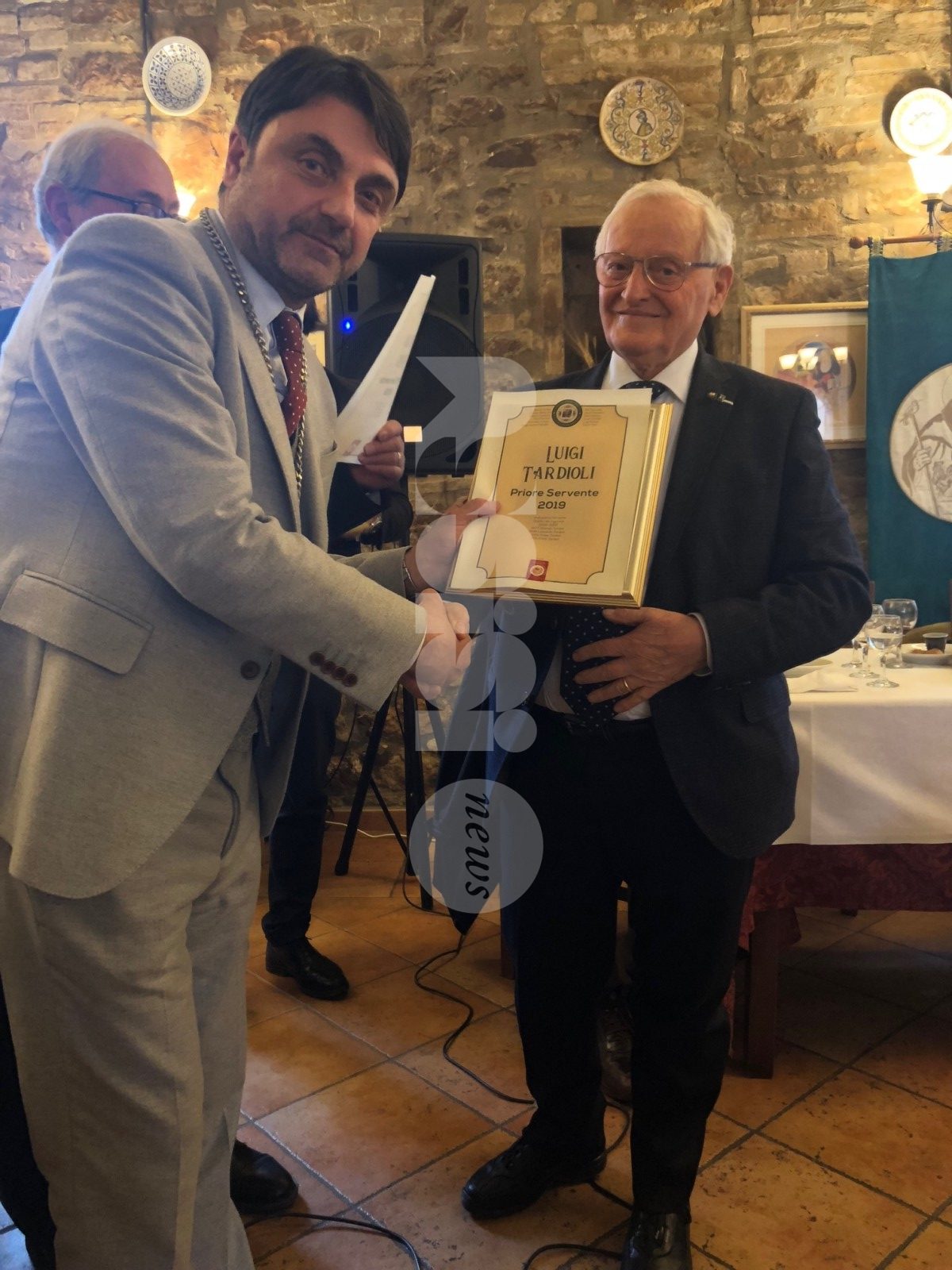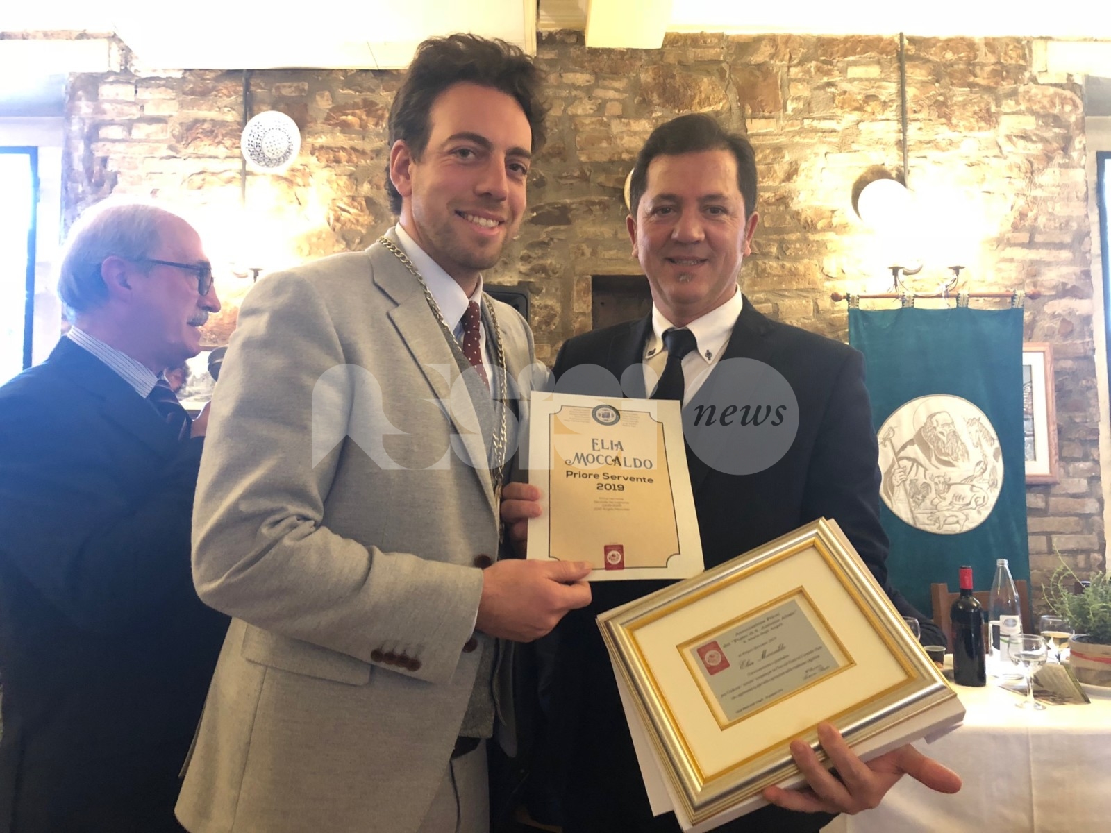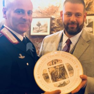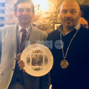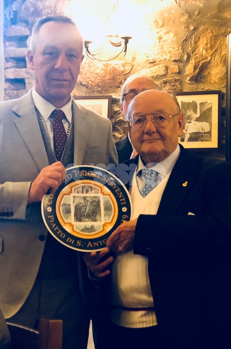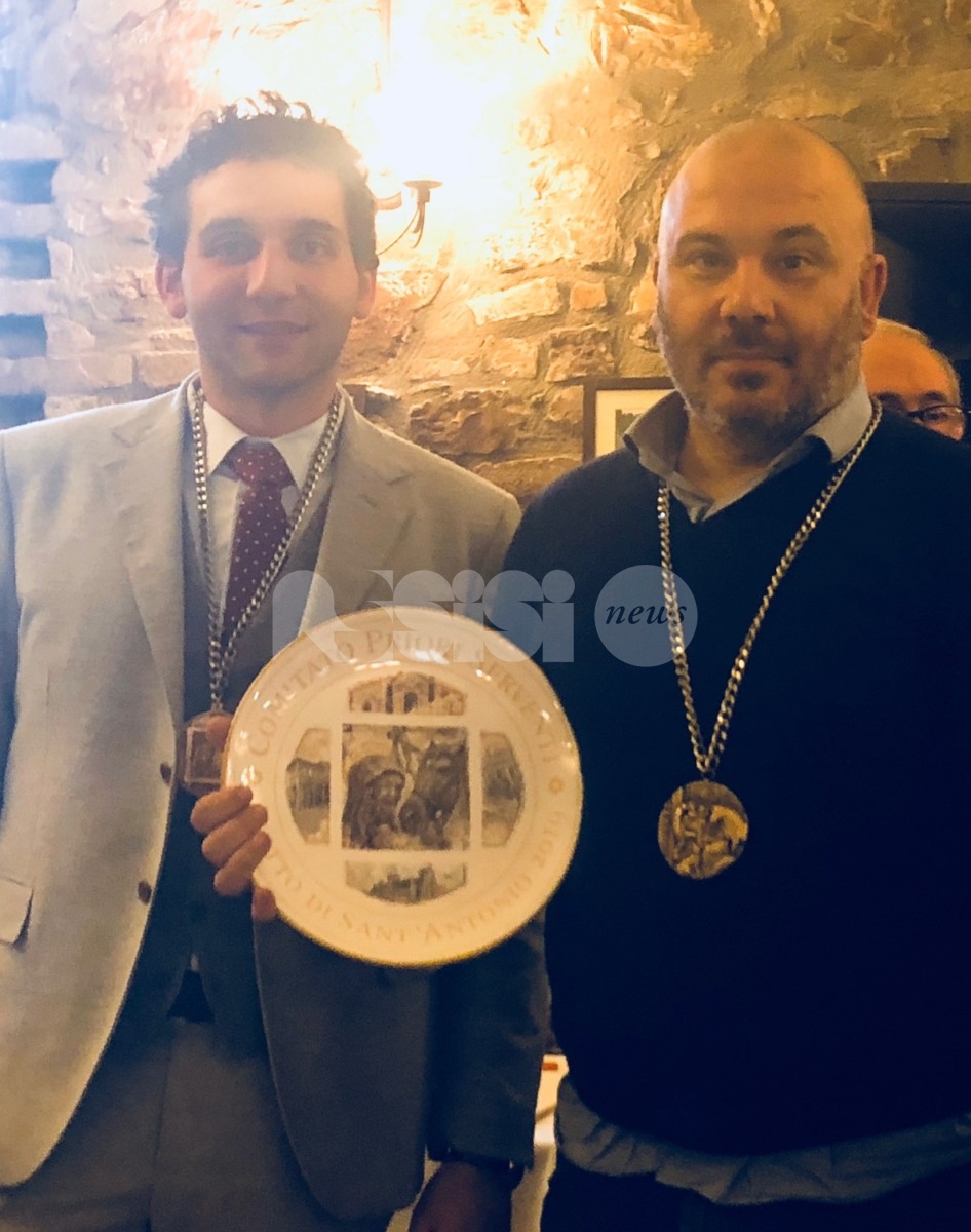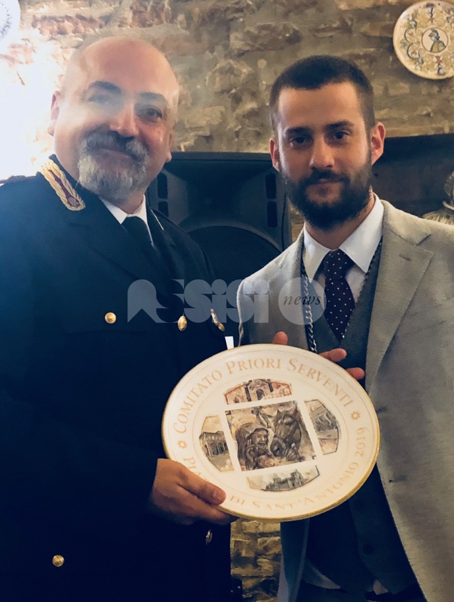 I Priori Serventi 2019, Alessio Abbati, Fabrizio Bistocchi, Alessio Castellani, Eros Famiani, Francesco Lanari, Hernan Diego Mendez, Elia Moccaldo, Giulio Passerini, Pietro Ronca, Paolo Sorbelli, Luigi Tardioli e Pietro Tosti hanno ufficialmente passato in mano l’edizione del Piatto di Sant’Antonio 2020 ai Priori Entranti, Serventi appuntonell’anno che verrà: Mauro Baglioni, Giancarlo Boschetti, Francesco Chioccioni, Juri Cianetti, Gianluca Gentile, Curzio Moretti, Filiberto Paggi, Riccardo Palazzini, Moreno Piampiano, Loris Ravizzoni, Fabrizio Ronca e Alessandro Roscini, sono loro che porteranno di nuovo avanti una tradizione davvero sentita nella cittadina della Porziuncola.