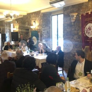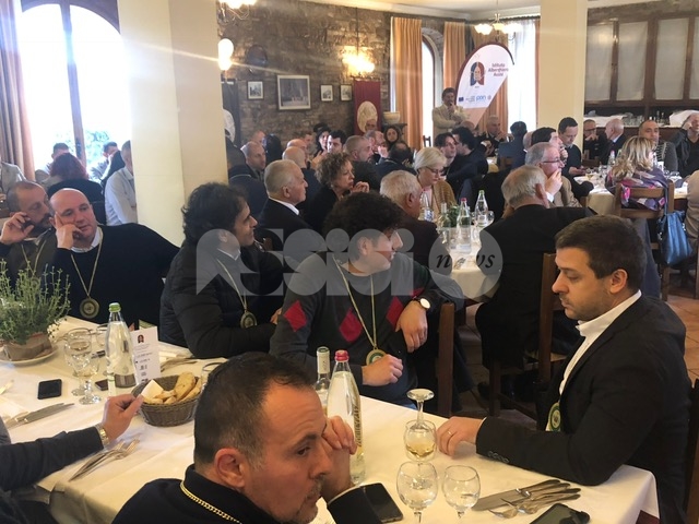 Oltre all’estrazione dei biglietti vincenti della lotteria del Piatto di Sant’Antonio 2019, lunedì 21 gennaio, si è svolto il tradizionale passaggio di consegne con il pranzo all’Antica Taverna dei Priori (quest’anno all’Antico Ristorante Biagetti). Era presente il sindaco di Assisi Stefania Proietti, insieme alle massime autorità cittadine, civili, militari e religiose. A curare il servizio, gli alunni dell’Istituto Alberghiero di Assisi.