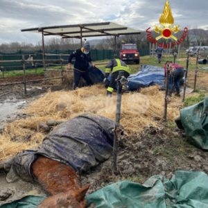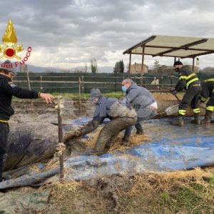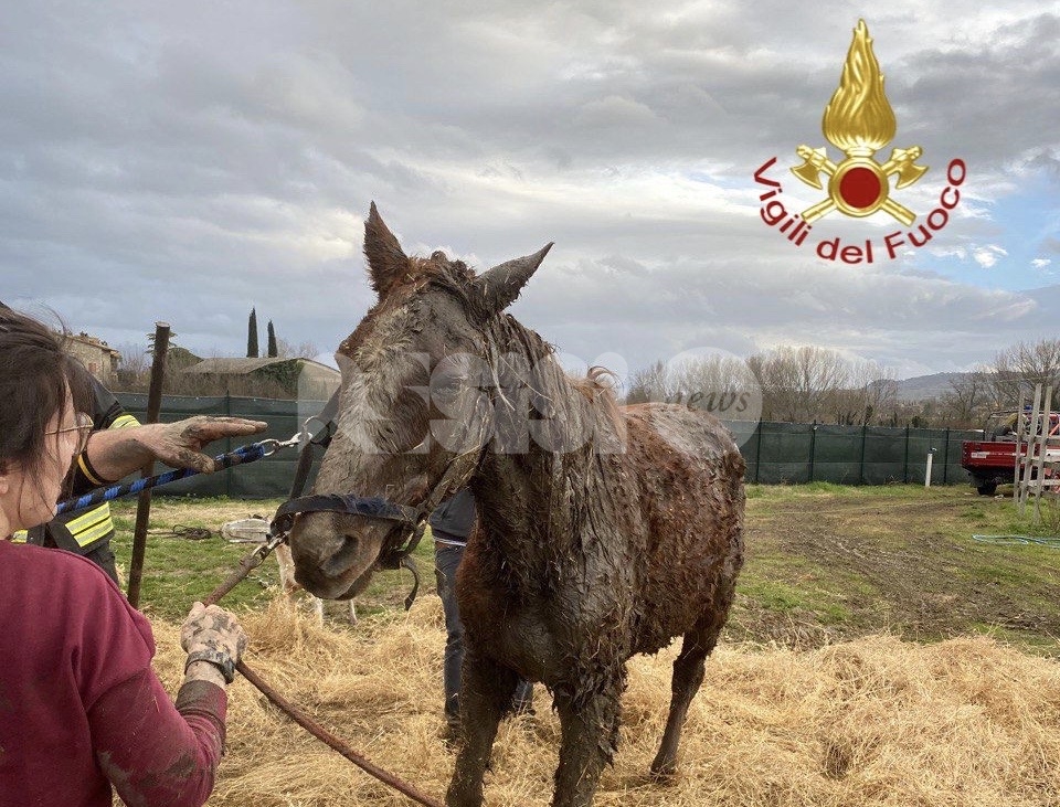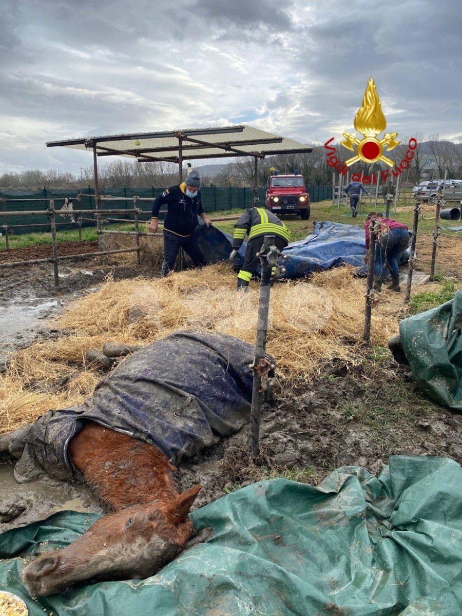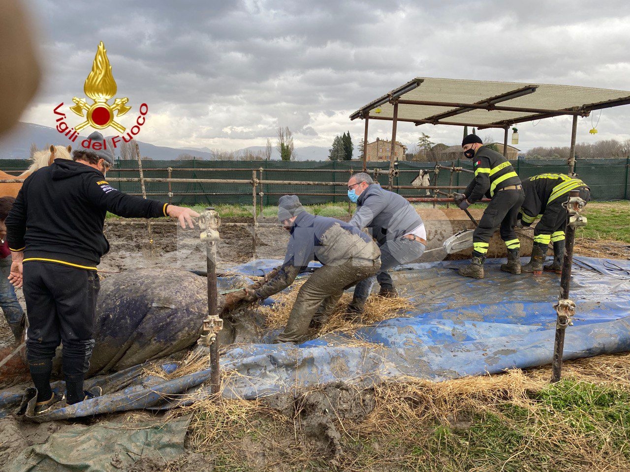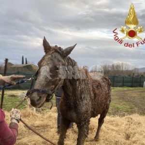 Brutta avventura per un cavallo e la sua proprietaria. La squadra dei vigili del fuoco di Assisi è intervenuta oggi pomeriggio (sabato 23 gennaio) a Passaggio di Bettona per recuperare un cavallo impantanato, nel corso della notte, a causa della rottura di un tubo dell’acqua che ha allagato l’area dove si trovava. I vigili sono stati contattati dai proprietari. I caschi rossi sono prontamente intervenuti e in circa un’ora sono riusciti a salvare l’animale che è in buone condizioni nonostante la brutta avventura.
