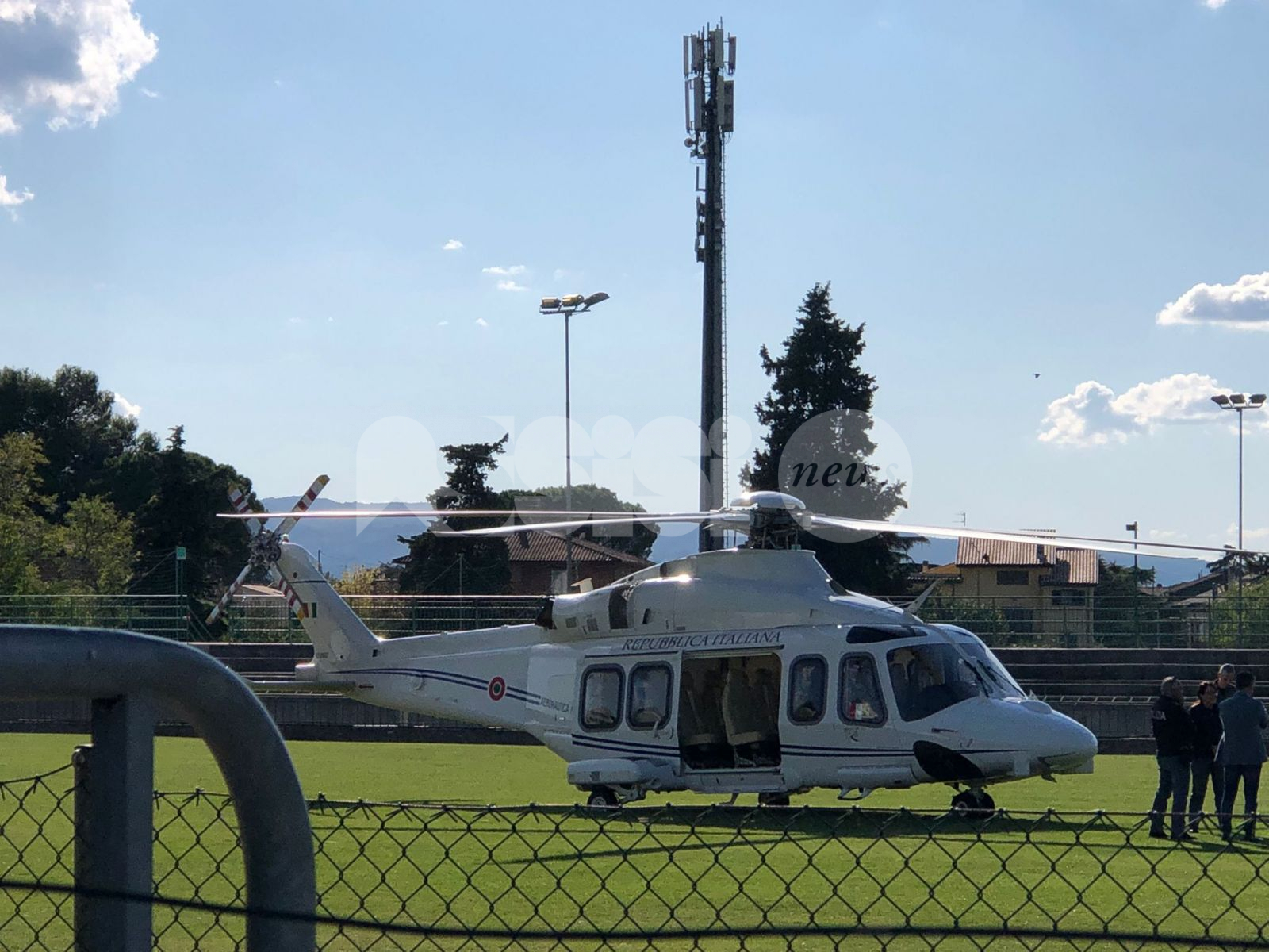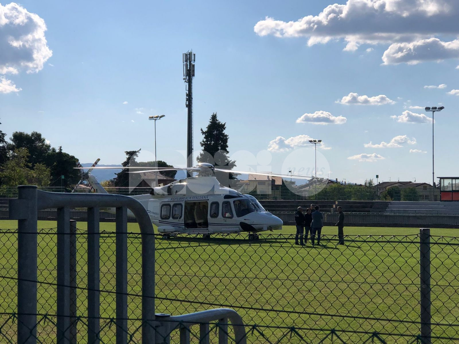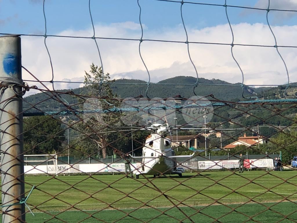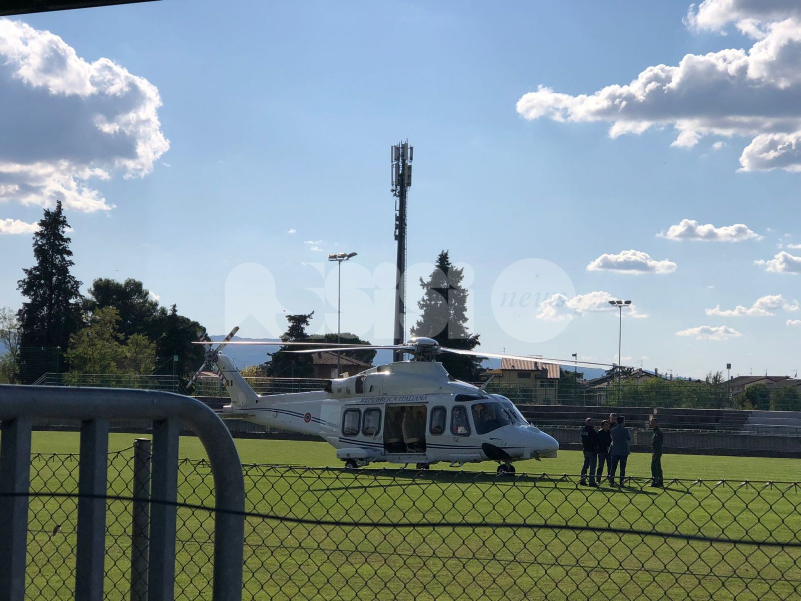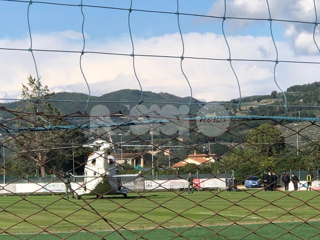 (Stefano Berti, Flavia Pagliochini) Ampio spiegamento di forze dell’ordine e grande mistero per l’arrivo dell’elicottero con una delegazione papale. Intorno alle 15.20 l’atterraggio allo stadio di Santa Maria degli Angeli. Sul posto i vigili del fuoco, la Polizia di Stato, personale in borghese, un’ambulanza e almeno un paio di frati. Non è al momento chiaro il motivo della visita, che sin da ieri ha destato da subito curiosità e stupore per un post diffuso dall’Angelana Calcio sulla propria pagina Facebook in cui si annunciava l’arrivo di una delegazione vaticana.