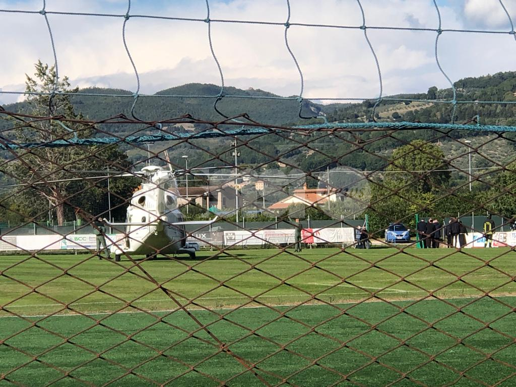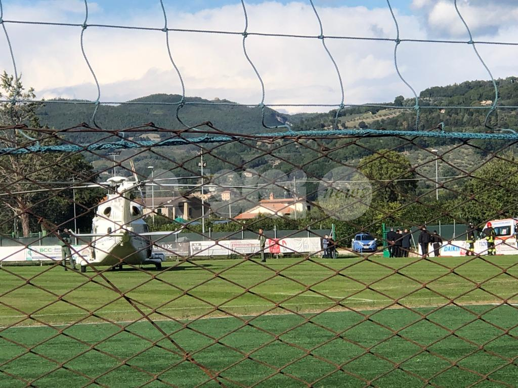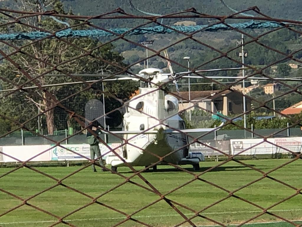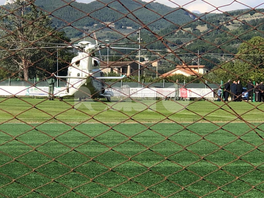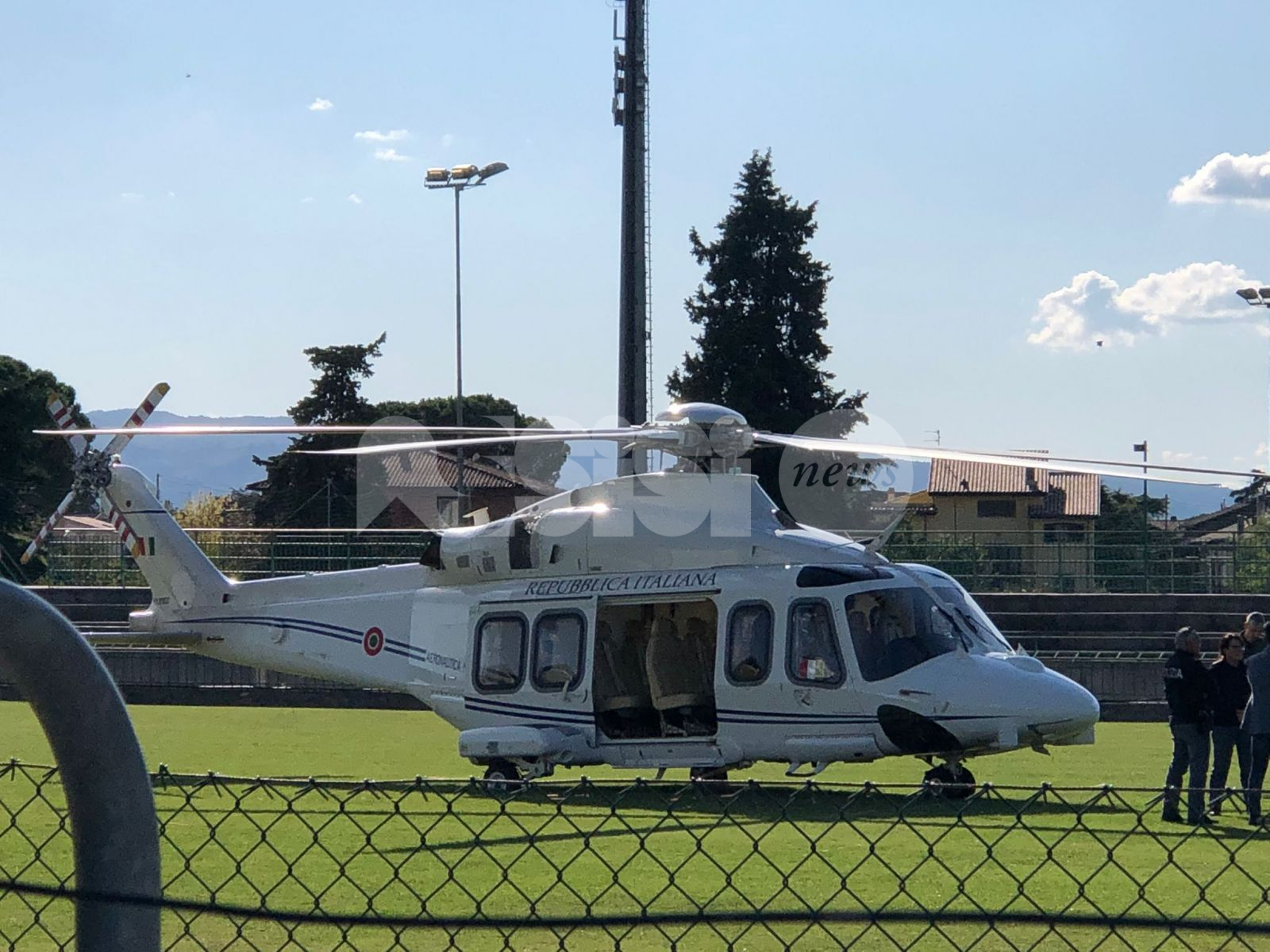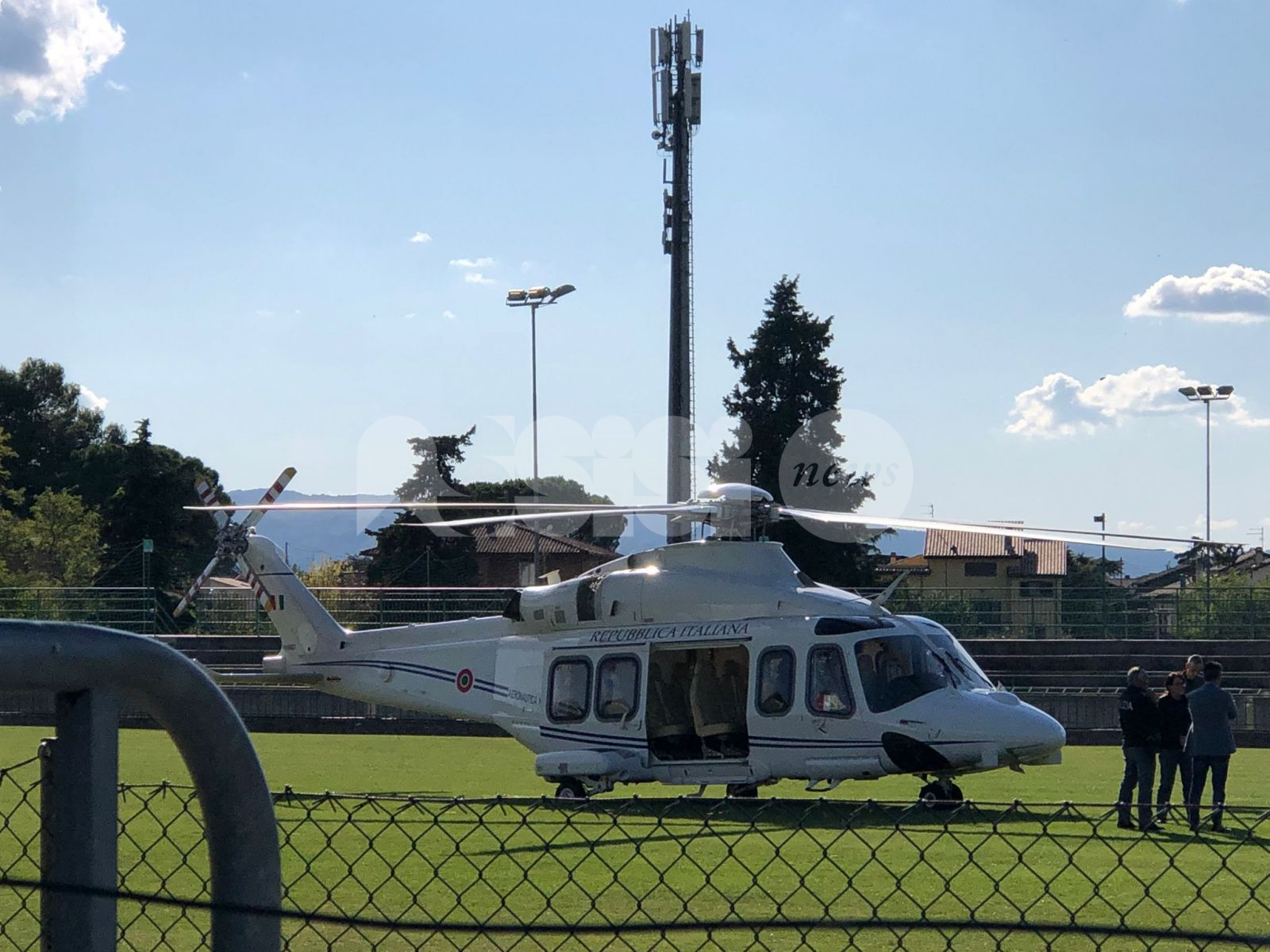 (Stefano Berti, Flavia Pagliochini) Ampio spiegamento di forze dell’ordine e grande mistero per l’arrivo dell’elicottero con una delegazione papale. Intorno alle 15.20 l’atterraggio allo stadio di Santa Maria degli Angeli. Sul posto i vigili del fuoco, la Polizia di Stato, personale in borghese, un’ambulanza e almeno un paio di frati. Non è al momento chiaro il motivo della visita, che sin da ieri ha destato da subito curiosità e stupore per un post diffuso dall’Angelana Calcio sulla propria pagina Facebook in cui si annunciava l’arrivo di una delegazione vaticana.