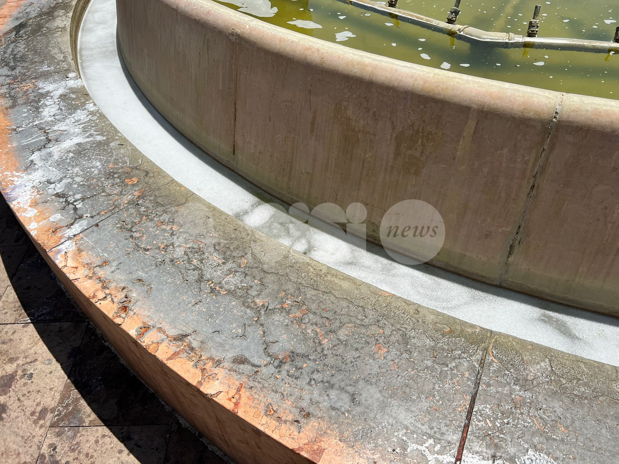 La vasca della fontana di piazza Garibaldi a Santa Maria piena di schiuma. Difficile che siano emuli di Ultima generazione, gli attivisti ambientali che spesso gettano del liquido nero nella vasca delle principali fontane italiane: un liquido “innocuo” carbone vegetale, che non provoca danni se si interviene subito e che comunque costa decine di migliaia di euro per la pulizia.