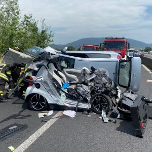 Secondo le prime informazioni si tratterebbe di uno scontro avvenuto tra due auto dopo che la prima, una Smart il cui conducente è rimasto ferito alla testa, ha colpito di striscio un camion che si era fermo per un guasto. A sua volta la Smart è stata poi colpita da un’altra auto, il cui conducente ha riportato ferite al braccio. Il conducente della Smart, soccorso in prima battuta dal titolare della Cometa, è rimasto letteralmente incastrato nell’auto. I vigili del fuoco hanno dovuto tagliare l’auto per liberarlo. Due i feriti, portati in ospedale in codice giallo in questo sinistro. Ma a peggiorare le cose, con disagi alla circolazione fino alla 17, il fatto che poco dopo sullo stesso tratto e tra le auto in coda si è verificato un tamponamento a catena: coinvolte in questo caso quattro auto.