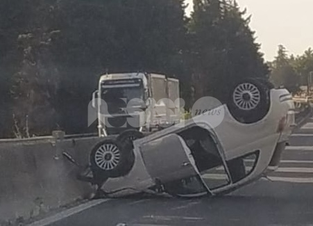 Incidente lungo la SS75 zona Spello in direzione Perugia. Illesa la conducente. Il fatto è avvenuto intorno alle 18.30 di oggi, martedì 5 luglio 2022. Sul posto un’ambulanza del 118 e l’auto medica, oltre ai vigili del fuoco. L’auto, una Fiat 500 si è ribaltata lungo la carreggiata. È stata raddrizzata dai vigili del fuoco e la persona alla guida dell’auto è stata ‘estratta’ e condotta in ospedale per gli accertamenti del caso. Una lunga coda si è formata lungo l’arteria stradale, anche se tutto sommato non si sono verificati grandi disagi e il traffico, seppur fortemente rallentato, è rimasto scorrevole.