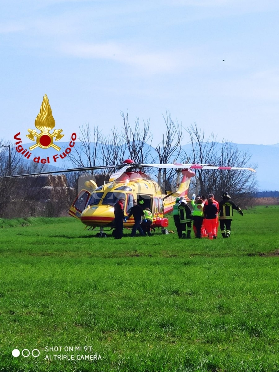 Secondo le prime informazioni fornite dai vigili del fuoco relativamente all’incidente sul lavoro a Castelnuovo di Assisi, la squadra di Assisi è intervenuta intorno alle 10.45 nella frazione assisana per un soccorso persona. Si trattava di un uomo del ’54, finito con le gambe sotto una attrezzatura agricola, mentre stava effettuando dei lavori nei campi. Soccorso e stabilizzato, è stato elitrasportato in ospedale. Sul posto anche elisoccorso e i carabinieri della compagnia di Assisi agli ordini del tenente colonnello Marco Vetrulli.