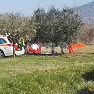 È stato soccorso con l’eliambulanza il 66enne rimasto vittima di un incidente sul lavoro a Castelnuovo di Assisi. Martedì 17 marzo 2020 un agricoltore della zona è rimasto incastrato sotto una sorta di trattorino a quattro ruote, con cui stava lavorando la terra nei pressi di casa sua. La zona è quella di via del Paradiso, appunto a Castelnuovo. (Continua dopo il video dei soccorsi)