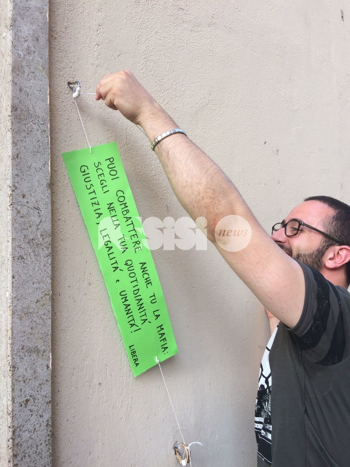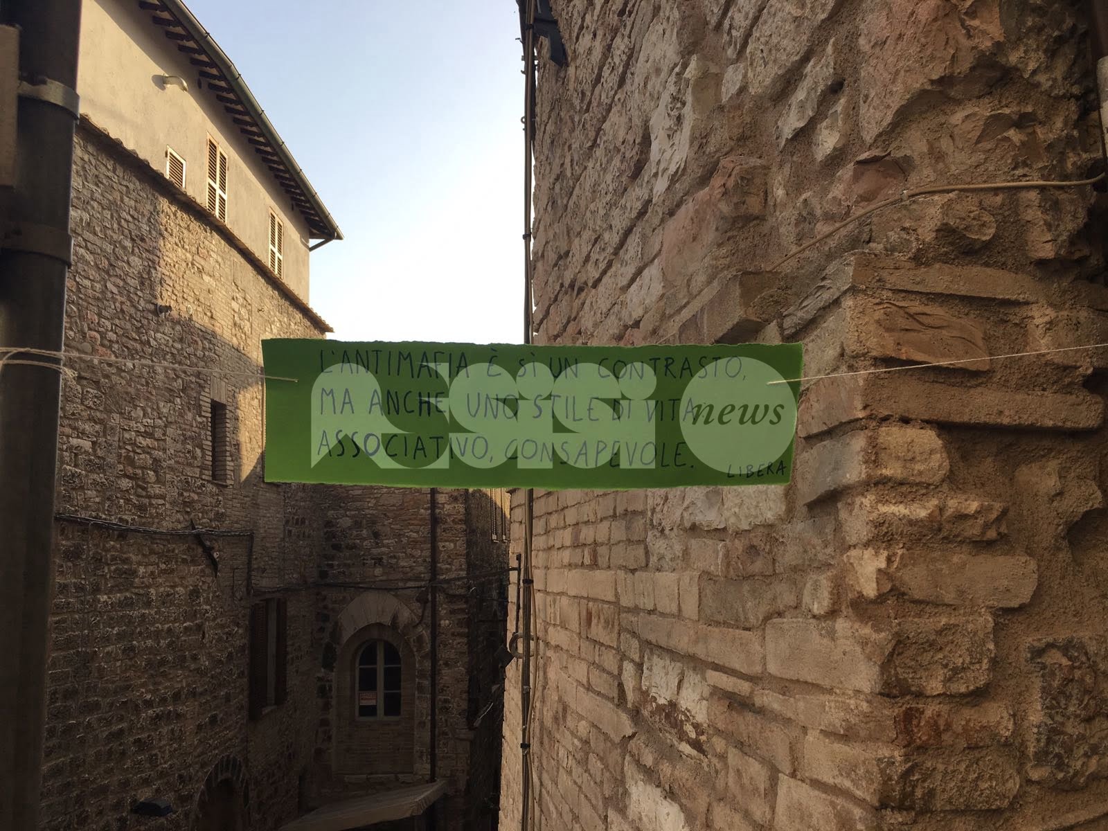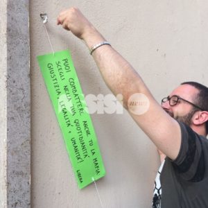 Tra i cartelli lasciati (anche all’Hotel Subasio), Informarsi sulla propria città è già iniziare a combattere la mafia; È meglio che inizi a sognare qualcosa di diverso; La mafia esiste; La presa di posizione ricorda che l’uomo è forte; La mia terra è madre di chi lotta; La mafia colpisce, la gioventù agisce; La mafia è silente, ci prende per il culo. Altri cartelli – scrive Libera – si possono scovare per le vie di Assisi, sperando che questi messaggi resistano al tempo.