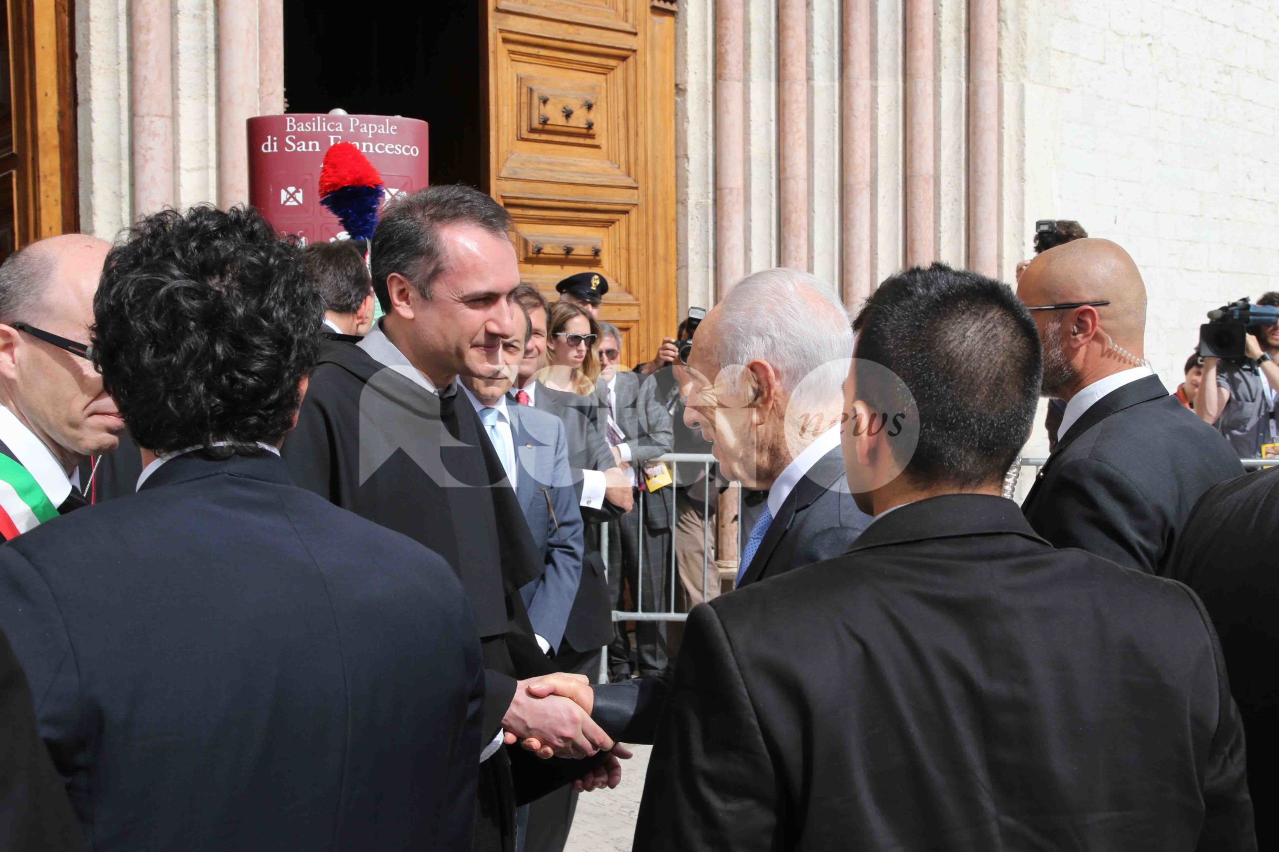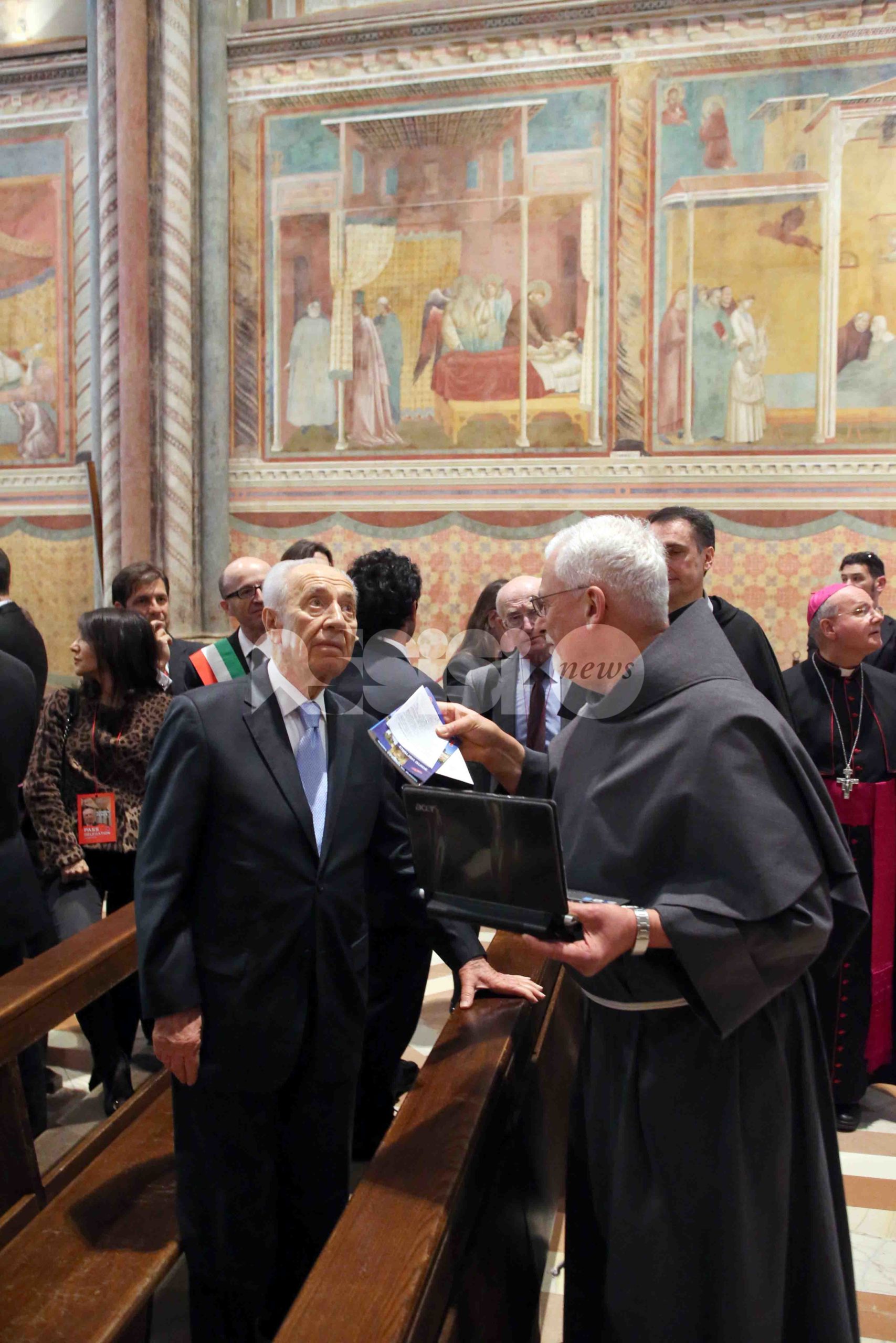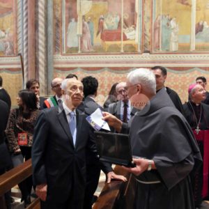 Nel corso della cerimonia, svoltasi nel Salone Papale del Sacro Convento, Peres aveva sottolineato tra l’altro che “io e la mia Nazione non dimenticheremo mai gli sforzi che avete sostenuto per salvare le vite di noi ebrei” e con tono pregno di emozione aveva ringraziato i cittadini assisani e quei frati che per salvare vite innocenti misero a repentaglio le proprie, come ricordano anche i documenti custoditi nel museo della Memoria di Assisi. Dopo l’arrivo ad Assisi, Shimon Peres aveva visitato la Basilica, guidato da padre Julian Zambanini, con grande attenzione per gli affreschi di Giotto; la visita umbra aveva toccato anche Nocera Umbra, in particolare l’antico monastero di San Biagio, a Lanciano dove il presidente si è fermato per pranzo.