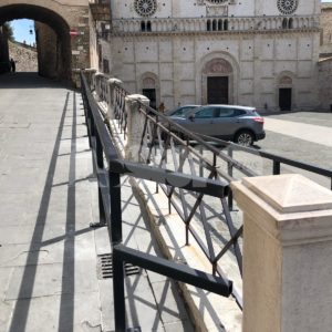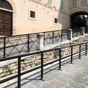 Sono cominciati i lavori di riqualificazione della colonnina del muretto di San Rufino, colpita qualche settimana fa da un’auto e da allora transennata. Dopo giorni di transenne generiche, alla fine della scorsa settimana sono cominciati dei lavori per ‘piazzare’ delle nuove strutture, più gradevoli alla vista. Forse anche troppo, visto svariati cittadini si chiedevano il perché di quelle strutture che “tutto sembrano, tranne provvisorie”, appunto anche vista la ‘bellezza’.