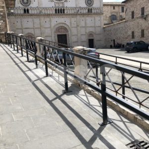 Ma a svelare l’arcano è lo stesso Comune di Assisi con un cartello. Quelle strutture nere e rifinite con cui è stato recintato parte del muretto di San Rufino sono parte di un intervento provvisorio di messa in sicurezza, anche in vista del Calendimaggio.