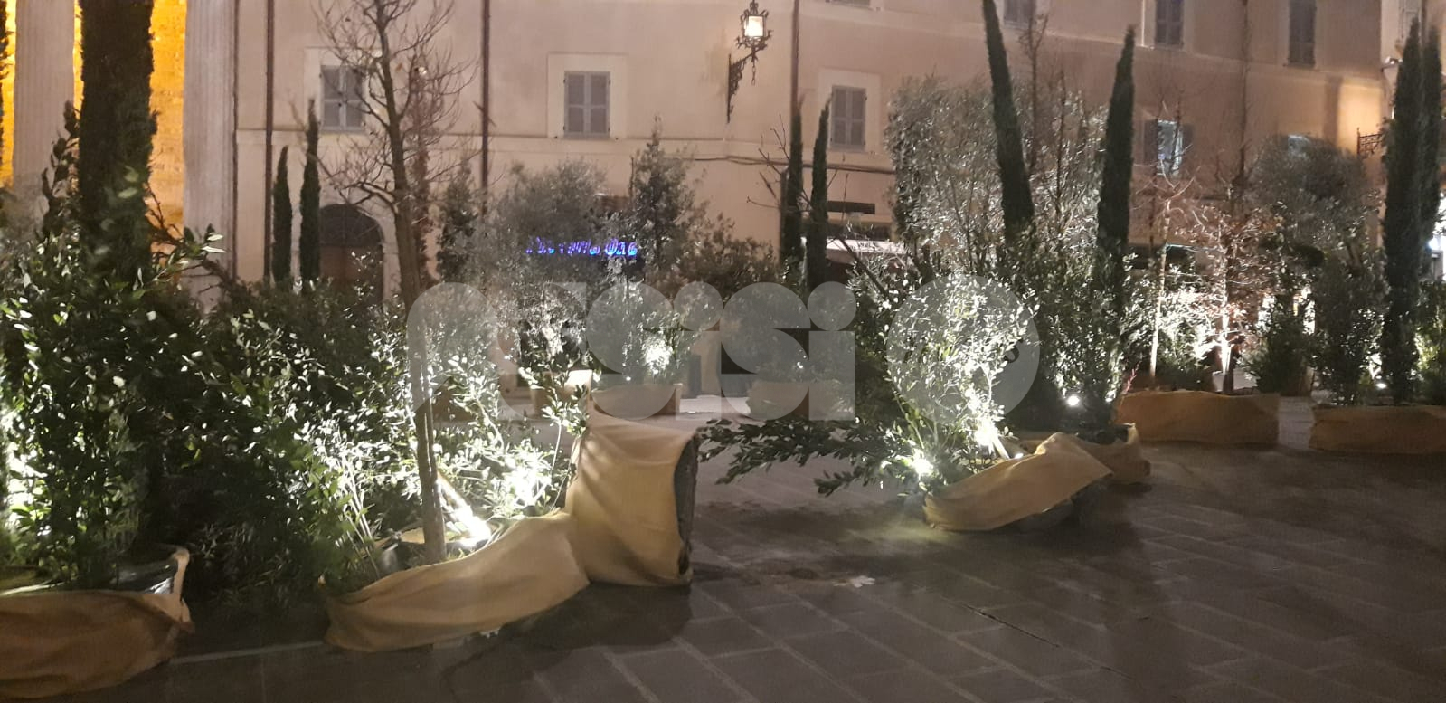 E invece ieri sera si è scoperto che i vasi di piante e arbusti non offrono abbastanza resistenza a un vento impetuoso. Peraltro, il Bosco è anche al centro di critiche perché l’unico punto da cui si vede bene, il campanile della Torre di Piazza, è inaccessibile. Nella migliore delle ipotesi e in assenza di un cartello esplicativo, allo spettatore distratto sembra un “accrocco” di piante, che peraltro – scendendo da San Rufino verso via Portica – copre anche l’eco-albero.