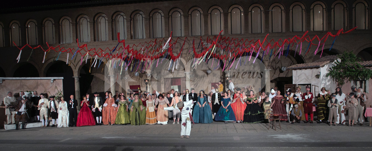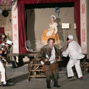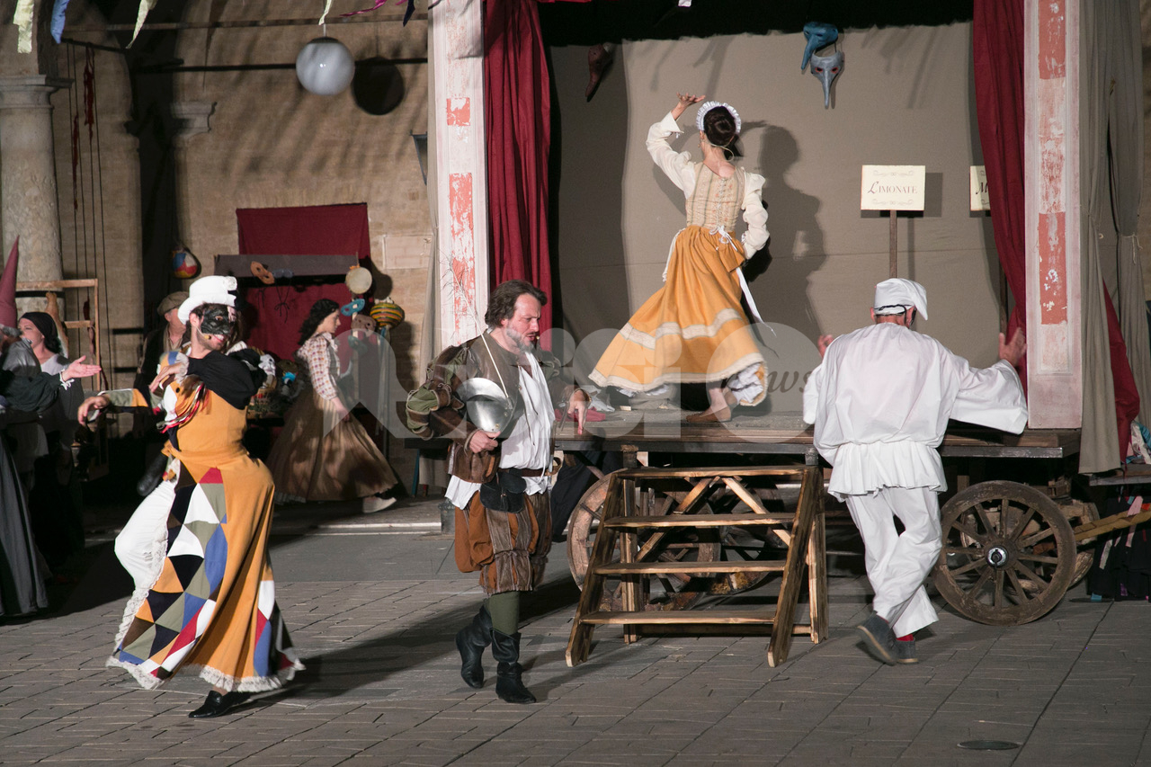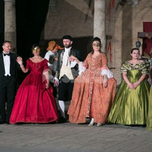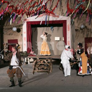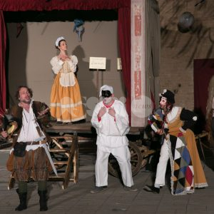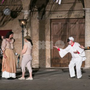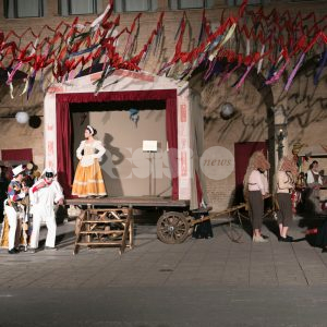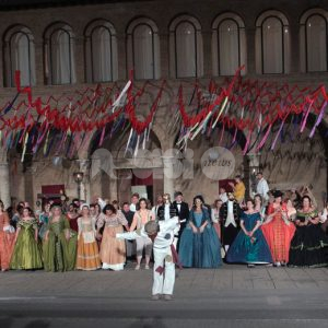 Infine ha sfilato il Rione del Campo che ha seguito un filone legato al teatro, alle opere e alle musiche che hanno caratterizzato l’800, scelte tra la varietà dei generi che erano presenti e che hanno scandito la magia del secolo. All’Epoca il teatro serviva per far sentire il pubblico parte integrante dello spettacolo proposto: poter immaginare di essere un nobile a teatro o un contadino in una piazza di qualche sperduto paese ed emozionarsi di fronte ad una tragedia, stupirsi e sognare ammirando un melodramma, tornare bambini guardando uno spettacolo di burattini e ridere e sorridere davanti al carro dei guitti.
