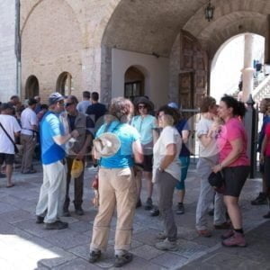 Ad attenderli lungo il percorso un’ accoglienza eccezionale al di là delle frontiere sensoriali, orientando le visite dei musei (Piccolo Museo del Diario, Civico Museo di San Sepolcro) e dei luoghi perché tutti possano cogliere la bellezza e la particolarità delle terre che attraversa la Via di Francesco. A Gubbio, ad esempio, il gruppo di pellegrini ha visitato la chiesa di San Francesco dove hanno potuto “leggere con le mani” il bassorilievo dell’artista Nello Bocci che rappresenta il momento in cui Giacomo della famiglia Spadalonga consegna il saio al suo amico Francesco d’Assisi e, nel giro in città, hanno ricevuto la ‘patente da matto’ correndo 3 giri di corsa intorno alla fontana del Bargello.