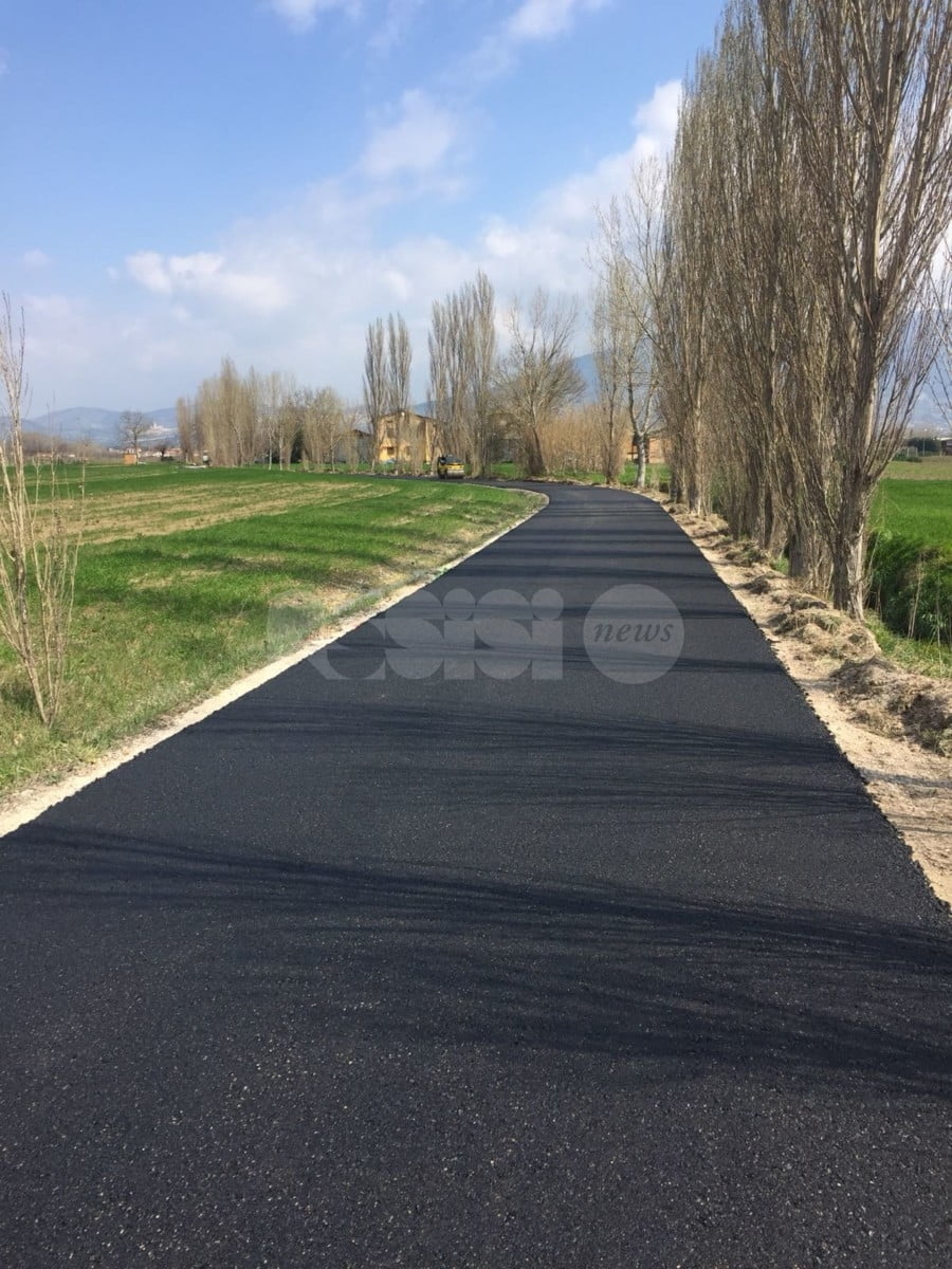In particolare oggi (venerdì 23 marzo 2018) si concludono i lavori di bitumatura di via dei Laghetti, nella frazione di Castelnuovo, una strada bianca che nella parte di pertinenza comunale è stata asfaltata. L’opera, per un importo netto di €28.963 euro, è consistita nella sistemazione del fondo stradale, nella preparazione del sottofondo e nella pavimentazione in conglomerato bituminoso. Un intervento atteso da anni quello in via dei Laghetti, strada che dalle 17 di questa sera sarà riaperta al traffico contestualmente alla fine dei lavori. Nei prossimi giorni prosegue le asfaltature del Piano Strade del Comune di Assisi interesseranno via Virgilio Lazzari a Petrignano, la zona di Sterpeto a Capodacqua e via Piaggia San Francesco. Nella giornata di giovedì, inoltre, operai del Comune hanno sistemato anche alcune delle buche nel piazzale della Stazione.