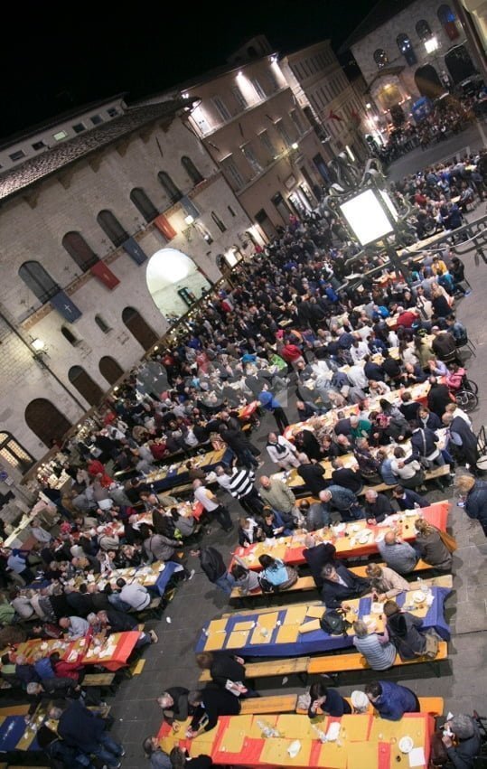 Due le novità significative messe in campo da Proietti per la cena in Piazza del Comune: “All’insegna della sobrietà dettata dai tempi, abbiamo voluto organizzare la cena ufficiale con un menù francescano, e invece di riservarla solo alle autorità presenti, abbiamo esteso l’invito alla cittadinanza, prevedendo un migliaio di persone, contro i trecento vip abituali. La cosa che ci fa più piacere – conclude – è che a conti fatti abbiamo risparmiato molto pur ampliando, e di molto, i commensali”. Tra gli invitati, anche i rifugiati ospiti nelle strutture del territorio comunale.