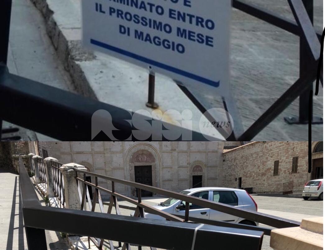Come noto, a maggio, Dopo giorni di transenne generiche, sono cominciati dei lavori per ‘piazzare’ delle nuove strutture, più gradevoli alla vista. Forse anche troppo, visto svariati cittadini si chiedevano il perché di quelle strutture che “tutto sembrano, tranne provvisorie”, appunto anche vista la ‘bellezza’. Ma a svelare l’arcano è lo stesso Comune di Assisi con un cartello. Quelle strutture nere e rifinite con cui è stato recintato parte del muretto di Piazza San Rufino sono parte di un intervento provvisorio di messa in sicurezza, anche in vista del Calendimaggio.