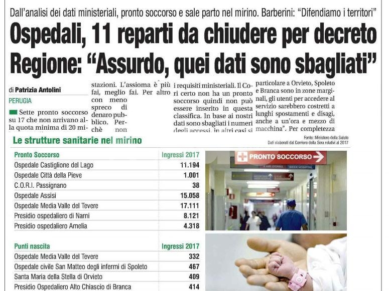 Ma per l’assessore alla Sanità Luca Barberini, nell’analisi “Ci sono errori macrocospici. In Umbria non ci sono 17 ospedali, i pronto soccorso definiti come tali soddisfano tutti i requisiti. In base ai nostri dati sono sbagliati i numeri e in altri casi si tratta di strutture di primo soccorso”. Inoltre lo stesso decreto spiega che i criteri riguardano le metropoli e le aree dove l’offerta sanitaria è vasta. Non sarebbe, quindi, il caso dell’Umbria.