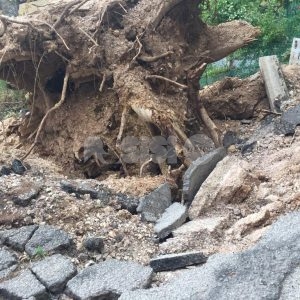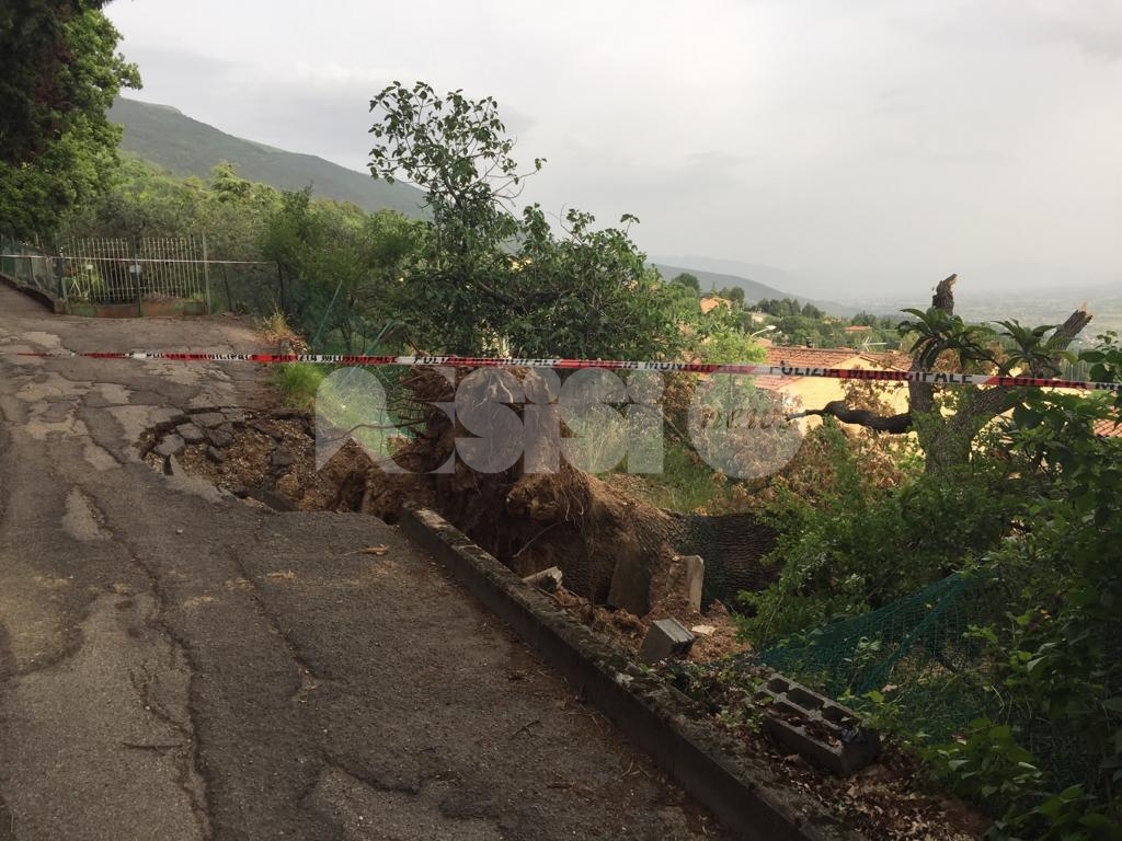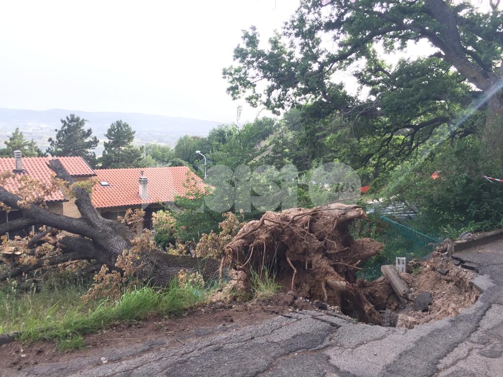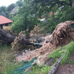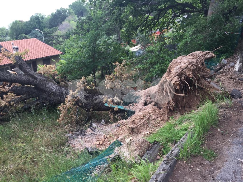 La quercia caduta in via Perosi durante un violento acquazzone ha abbattuto una recinzione; sul posto si erano recati la municipale, i vigili del fuoco e la squadra operativa del Comune. Oltre al danno alla recinzione, la voragine provocata dalla quercia caduta ha causato la chiusura della strada e convinto il Comune della necessità di procedere alla valutazione delle altre piante della zona. Da una verifica sul posto, si vede che la strada è ancora chiusa (la metà esistente, visto che l’altra metà di fatto non esiste più) e che sembra di essere tornati al periodo dei lavori per la frana, quando la strada è rimasta chiusa per anni.