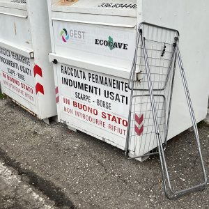 Nuovamente rifiuti abbandonati e sporcizia al di fuori della campane del vetro o vicino ai contenitori destinati alla raccolta indumenti usati, una cosa brutta da vedere agli occhi che non giova alla città e al territorio. E stamattina, lunedì 7 febbraio 2022, oltre ai soliti sacchetti lasciati a terra, c’è anche uno stendino. Accade di nuovo a Santa Maria degli Angeli. In troppi, proseguono ancora spesso per maleducazione incuranti del bene comune territoriale a lasciare al di fuori dei contenitori per il vetro il materiale giacente a terra.