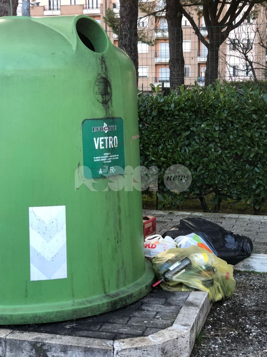 Nuovamente ammassi di rifiuti abbandonati e sporcizia al di fuori della campane del vetro, una cosa brutta da vedere agli occhi che non giova alla città e al territorio. Accade di nuovo a Santa Maria degli Angeli. In molti, proseguono spesso per maleducazione incuranti del bene comune territoriale a lasciare al di fuori dei contenitori per il vetro il materiale giacente a terra.