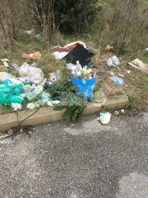 Già in passato la zona era stata segnalata affinché Comune o Provincia (la carreggiata di fianco al parcheggio è di competenza provinciale) potessero intervenire per togliere i rifiuti, ma nonostante sollecitazioni e richieste, ad oggi la situazione è peggiorata e quella che sta sorgendo può essere considerata a tutti gli effetti una vera discarica. I rifiuti si ammassano sempre di più ai lati del parcheggio, fra le sterpaglie di erbaccia incolta rimasta lì dagli scorsi mesi primaverili. Tra i rifiuti, bottiglie in plastica e in vetro quasi nell’intero perimetro, cibi a terra anche in grandi quantità , secchi in plastica, residui di carta, cartone e imballi danneggiati dalle intemperie.