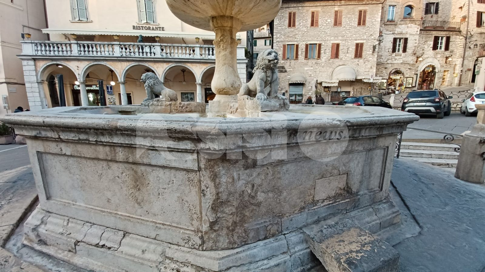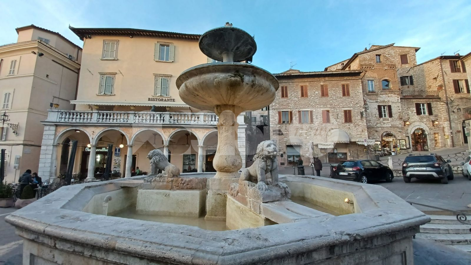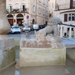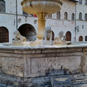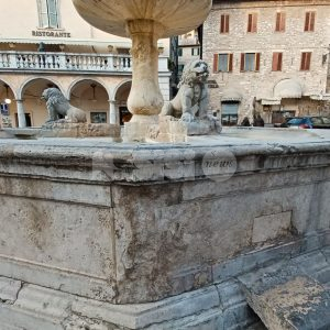 Da qui la necessità di una forte pulizia. Che, dopo anni di interventi a macchia di leopardo (come quello del 2017), ieri sembra essere arrivata: è stata infatti ripulita la fontana di Piazza del Comune, meglio delle altre volte e ponendo fine a un degrado che durava anni. Già nell’anno 1303 si ha notizia di una fontana in piazza del Comune, anche se la fontana odierna non è l’originale, ma fu ricostruita nel 1772 dallo scalpellino di Assisi Giuseppe Martinucci su disegno dell’architetto Valeri. La vasca inferiore è divisa in nove lati e è ornata da tre leoni allusivi ai tre rioni urbani. Un balaustro centrale sorregge una seconda vasca circolare, che porta a sua volta un balaustro con una pigna.