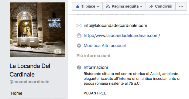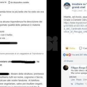 Oltre 200.000 fan, tra comiche recensioni, risposte dei ristoratori, e contest di piatti italiani cucinati (male) in giro per il mondo: è la pagina Insultare su Tripadvisor sentendosi grandi chef, che ha notato la risposta di Roberto Damaschi, imprenditore e titolare della Locanda del Cardinale ad Assisi (finita anche nella Guida di Repubblica), a due recensioni (pessime, con uno e due pallini su cinque) di clienti vegani infuriati (il ristorante ha oltre il 90% di recensioni fra l’eccellente e il molto buono). “Intanto, ad Assisi, spunta i primo locale Vegan Free”, scrivono gli amministratori della pagina condividendo lo screen della recensione.