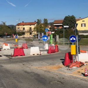 La rotatoria di via Ermini (che rotatoria ancora non è) in una via certamente complicata, annunciata al tempo come un progetto provvisorio, ma che ancora oggi presenta i divisori in plastica bianco e rossi, alcuni dei quali riversati a terra, fra sporcizia ed erbacce che non solo cresce all’interno dello svincolo, ma anche lungo la strada prima dello stesso (pure nel mezzo della carreggiata). Un’immagine non bella e un progetto in itinere che non vede la luce, se si aggiunge che il manto stradale è divelto un po’ ovunque, pieno di buche ed affossamenti, al quale cerca di rispondere l’assessore all’urbanistica e ai lavori pubblici Alberto Capitanucci.