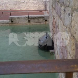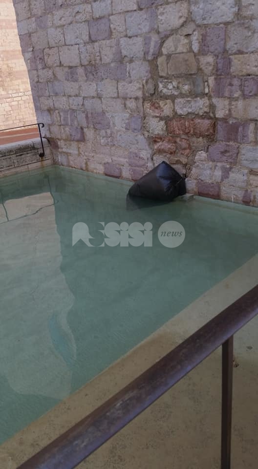 Un sacco della spazzatura dentro i vasconi di Piazza Santa Chiara. Succede nel pieno centro storico di Assisi, nella giornata del 4 marzo 2019, come documentato da Andrea C. su Sei di Assisi se….