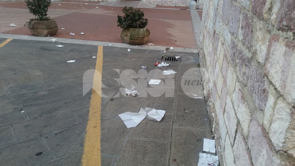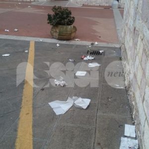 Rifiuti dentro i vasconi di Piazza Santa Chiara
