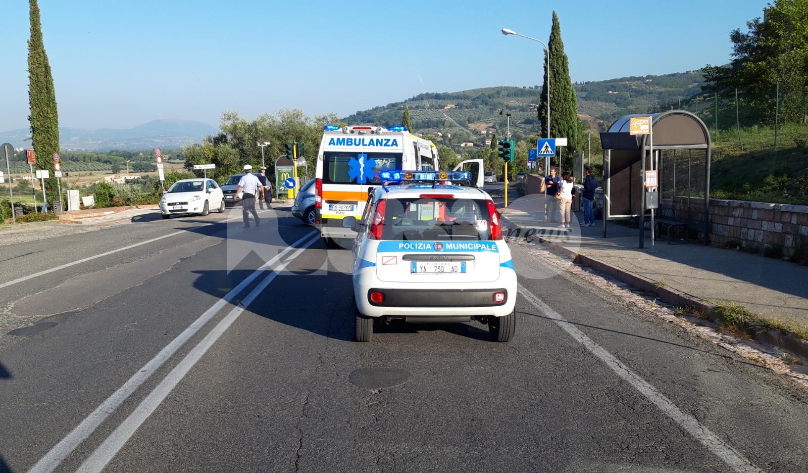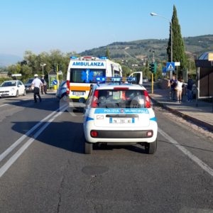 Scontro motorino auto all’entrata a scuola, succede in via Giovanna di Savoia, Regina dei Bulgari, alle porte del centro storico di Assisi. Per cause in corso di accertamento, i due mezzi si sono scontrati nella zona della fermata del bus, all’inizio della mattonata. Apparentemente l’auto stava facendo manovra, uscendo dal parcheggio, quando si è scontrata con il motorino, condotto da un giovane studente. Fortunatamente i mezzi andavano piano e non ci sono feriti gravi. Sul posto la municipale per i rilievi del caso e il 118.