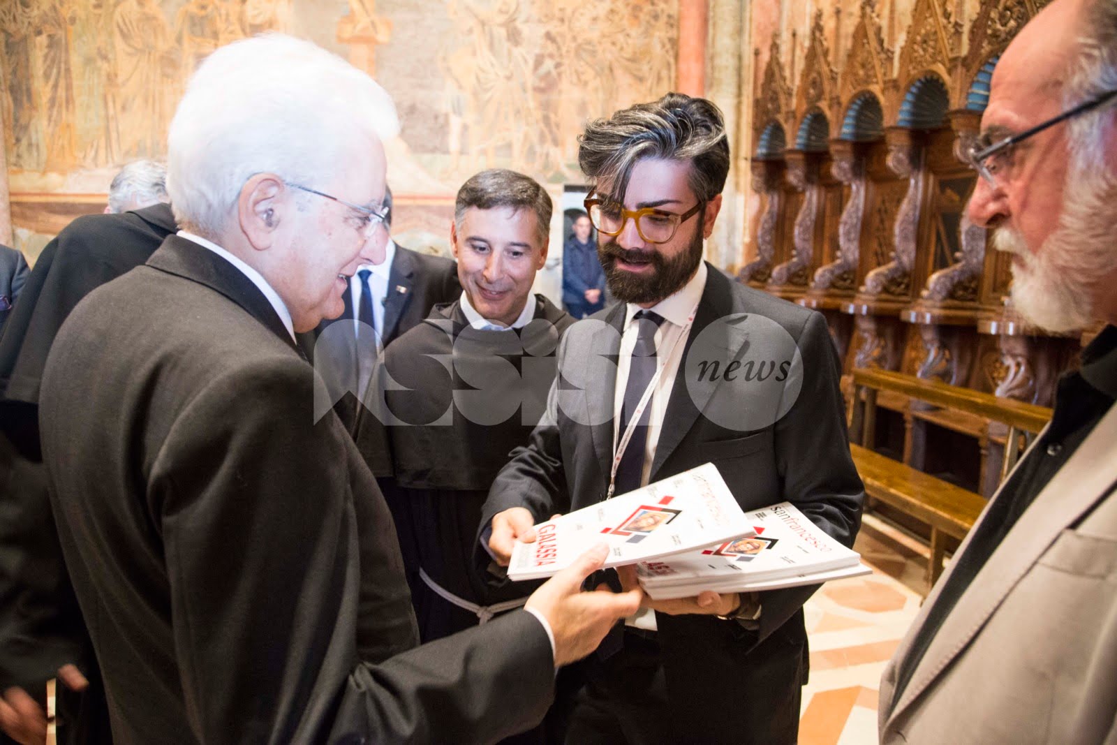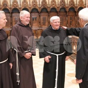 In occasione della visita di Sergio Mattarella ad Assisi, nella Basilica Superiore di San Francesco, e alla tomba del Santo, il direttore della Rivista San Francesco, Padre Enzo Fortunato, e il capo redattore, Andrea Cova, hanno donato al Presidente una copia esclusiva del mensile che racconta l’intera famiglia francescana. “Spesso – è scritto in una nota – l’Ordine Francescano viene raffigurato come un grande albero dal cui tronco sono spuntati, lungo i secoli, innumerevoli rami frondosi. Rappresentano la grande schiera delle famiglie religiose che si ispirano al carisma di Francesco d’Assisi. Il titolo del numero di ottobre è ‘Galassia Francescana’, una galassia fatta di uomini e donne, di giovani e non, che vuole aiutarci a stupire il mondo con la propria vita, con i propri gesti, con un respiro che nella Cripta ha le sue radici: Francesco. La Galassia del Patrono d’Italia non è frammentazione, ma unità nella diversità”.