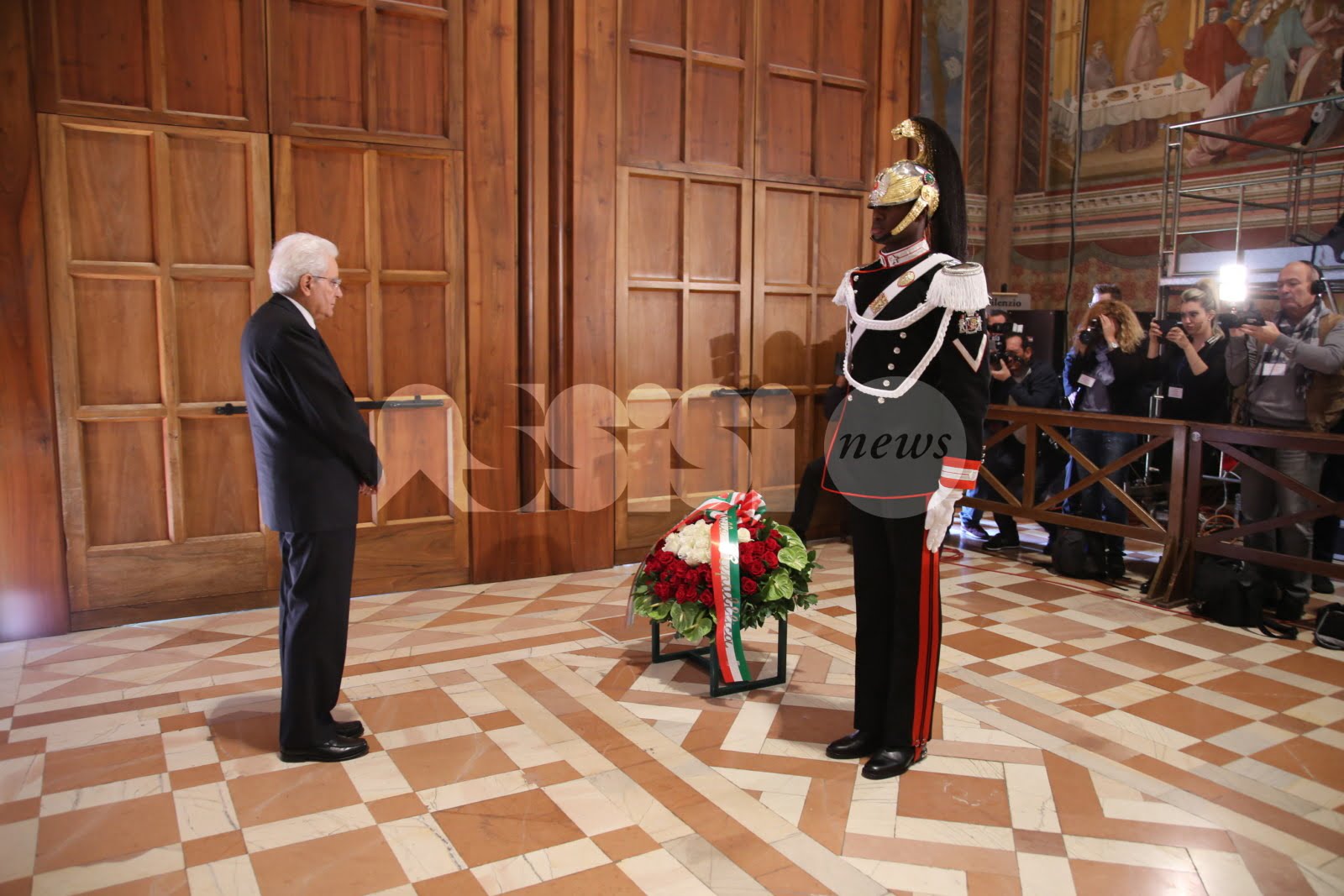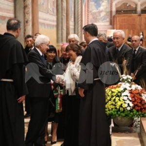 Il presidente della Repubblica Sergio Mattarella ad Assisi per il ventennale del terremoto: alle 10.30 il Capo dello Stato ha visitato la Basilica Superiore di San Francesco, deponendo, alla presenza dei familiari delle vittime e sulla mattonella collocata all’ingresso della Basilica superiore di Assisi, una corona di fiori in memoria dei quattro morti nel crollo della volta della Basilica Superiore di San Francesco (padre Angelo Api e il seminarista polacco Borowec Zdzislaw e i due tecnici della Soprintendenza, Bruno Brunacci e Claudio Bugiantella). Presenti insieme al presidente della Repubblica la governatrice Catiuscia Marini, il presidente della Provincia di Perugia Nando Mismetti, il sindaco di Assisi Stefania Proietti e il vescovo di Assisi, monsignor Domenico Sorrentino.