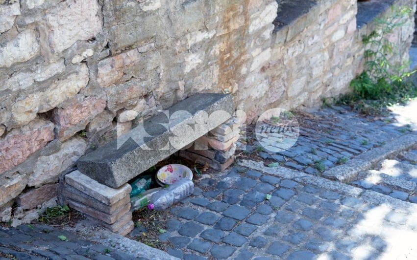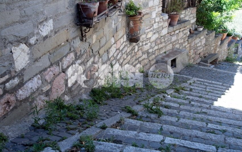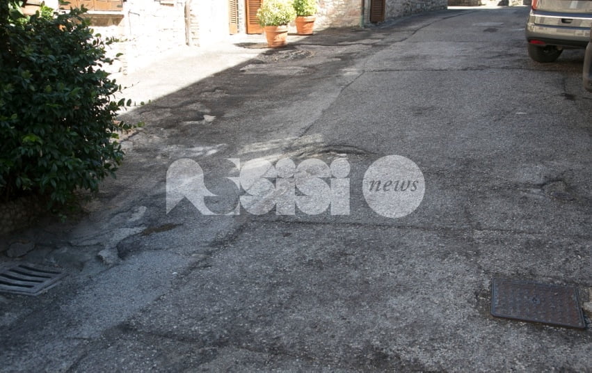 Non va meglio nella parte alta del centro storico di Assisi, dove nel strade nel degrado sono via dell’Acquaraio (dove la maleducazione dei turisti fa sì che piatti e bicchieri vengano messi persino sotto le panchine), e le erbacce crescono in mezzo alla pavimentazione. E a proposito di pavimentazione, come ricorda il Corriere dell’Umbria – per colpa della burocrazia – ma anche di chi, all’epoca, niente ha fatto per inserire nei lavori del Pir anche via dell’Acquaraio, a fronte del 95% di vicoli rifatti a opera d’arte con marciapiedi in pietra rosa e sanpietrini squadrati, presenta ancora una vecchia pavimentazione con asfalto rattoppato. Peggio va in via Porta Perlici,anch’essa rimasta fuori dal Pir, con il risultato che la pavimentazione è composta da vecchi sanpietrini neri che attentano alle caviglie di turisti e residenti e che oramai si classificano come un vero e proprio reperto storico.