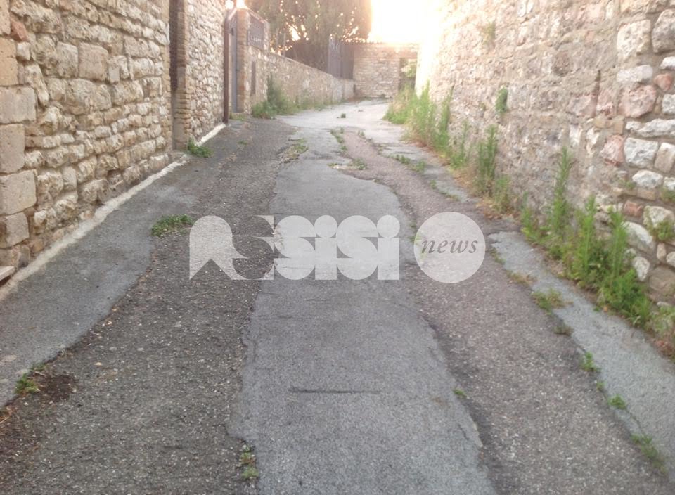 Strade nel degrado nel centro storico di Assisi, nuove segnalazioni dai residenti. Come riporta il Corriere dell’Umbria, caso eclatante è quello di via degli Acquedotti, a due passi da Santa Chiara, abitata e anche dimenticata, nonostante le numerose segnalazioni dei residenti, “da tutte le amministrazioni che si sono susseguite negli anni”. Tra buche e il verde che cresce rigoglioso e nessuno taglia, i residenti fanno i conti con anni di abbandono arrivando a sviluppare una speciale ironia: “ChissĂ – si chiedeva tempo fa una di loro – se via degli Acquedotti si chiama così perchè almeno una volta al mese si rompono le tubature dell’acqua e diventa un fiume?”.