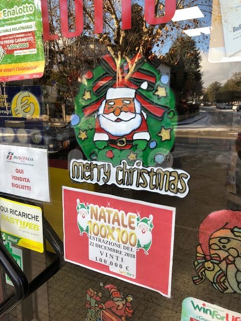 È la tabaccheria Ziarelli di Santa Maria degli Angeli, in via Giovanni Becchetti, la fortunata ricevitoria dove sono stati vinti 100.000 euro a Natale (estrazione del 22 dicembre 2018) da parte di un fortunato giocatore al Superenalotto, con la combinazione 100×100 Natale, istituita in occasione della chiusura d’anno e delle festività che stanno per concludersi con l’Epifania.